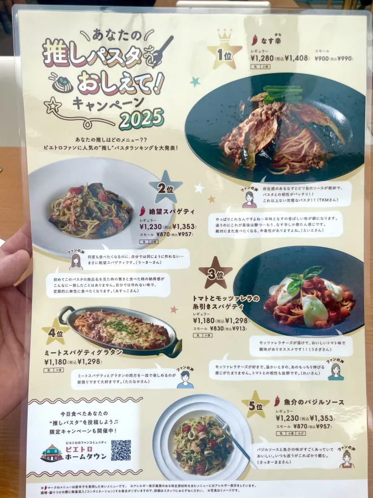 あなたの推しパスタを教えて!キャンペーンのメニュー表、ありました(*≧∀≦*)