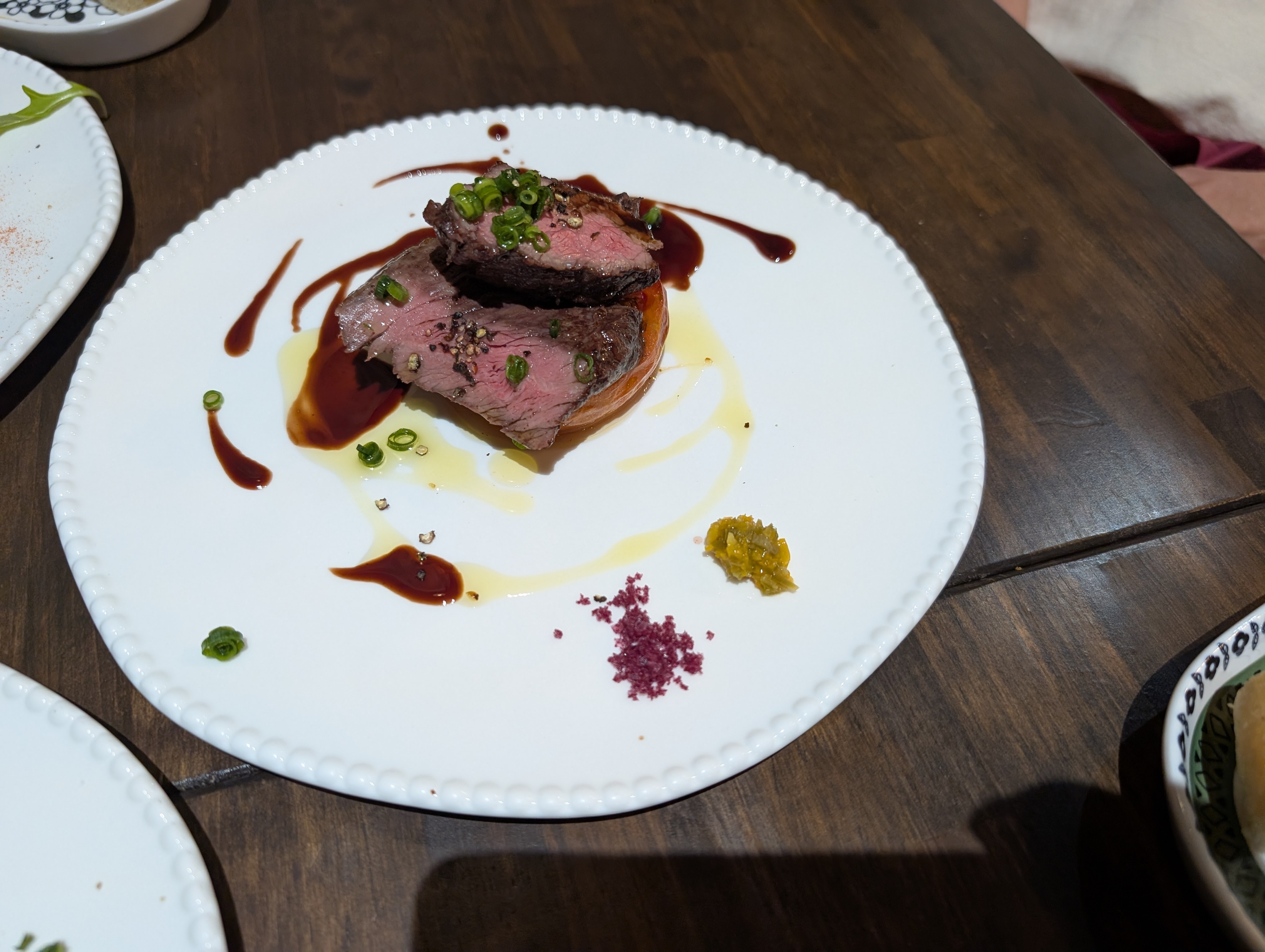 ソースは赤ワインで仕上げたソースに備え付けは岩塩と自家製柚子胡椒がそえてありましたよ🤭