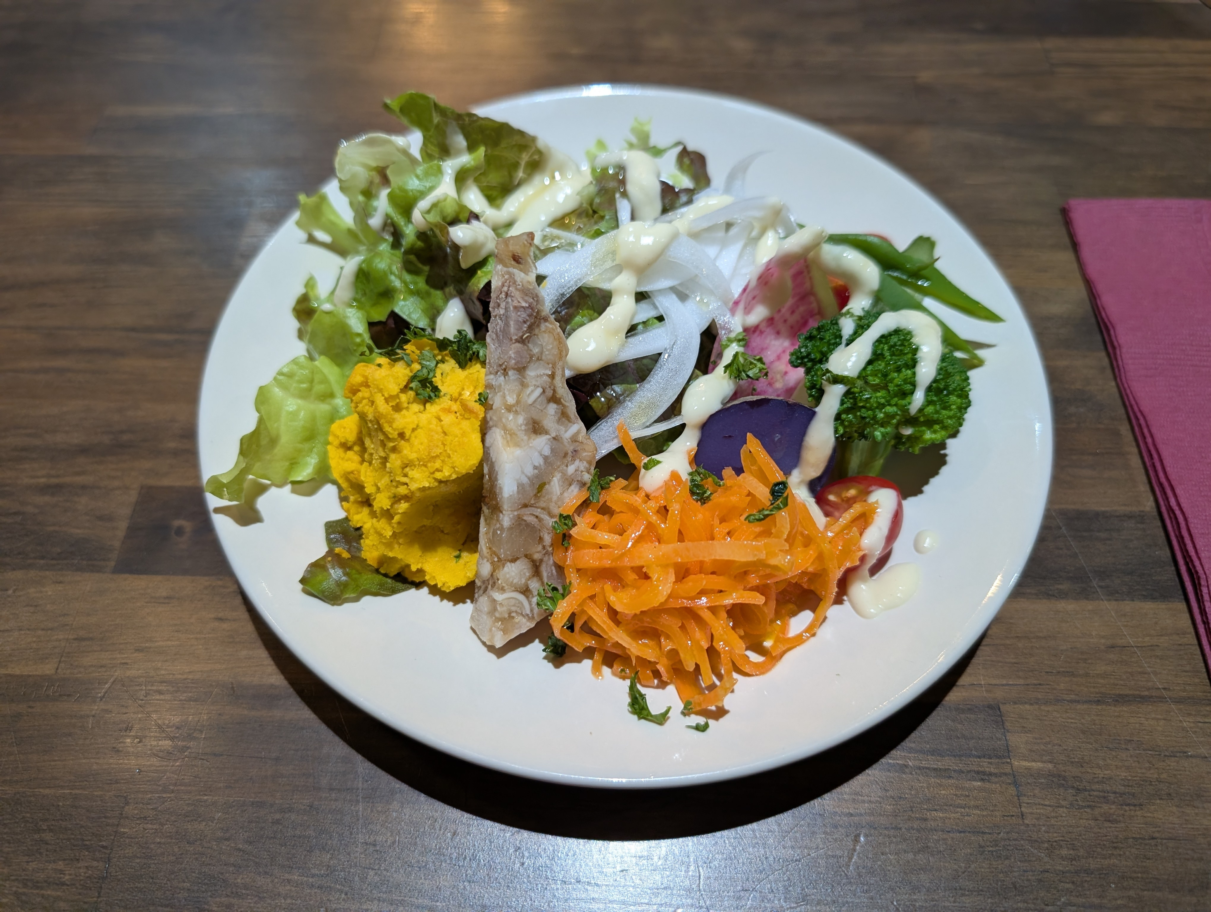 前菜もドレッシングが美味しくひっそりと大阪野菜の水茄子さんもいて美味しい😆