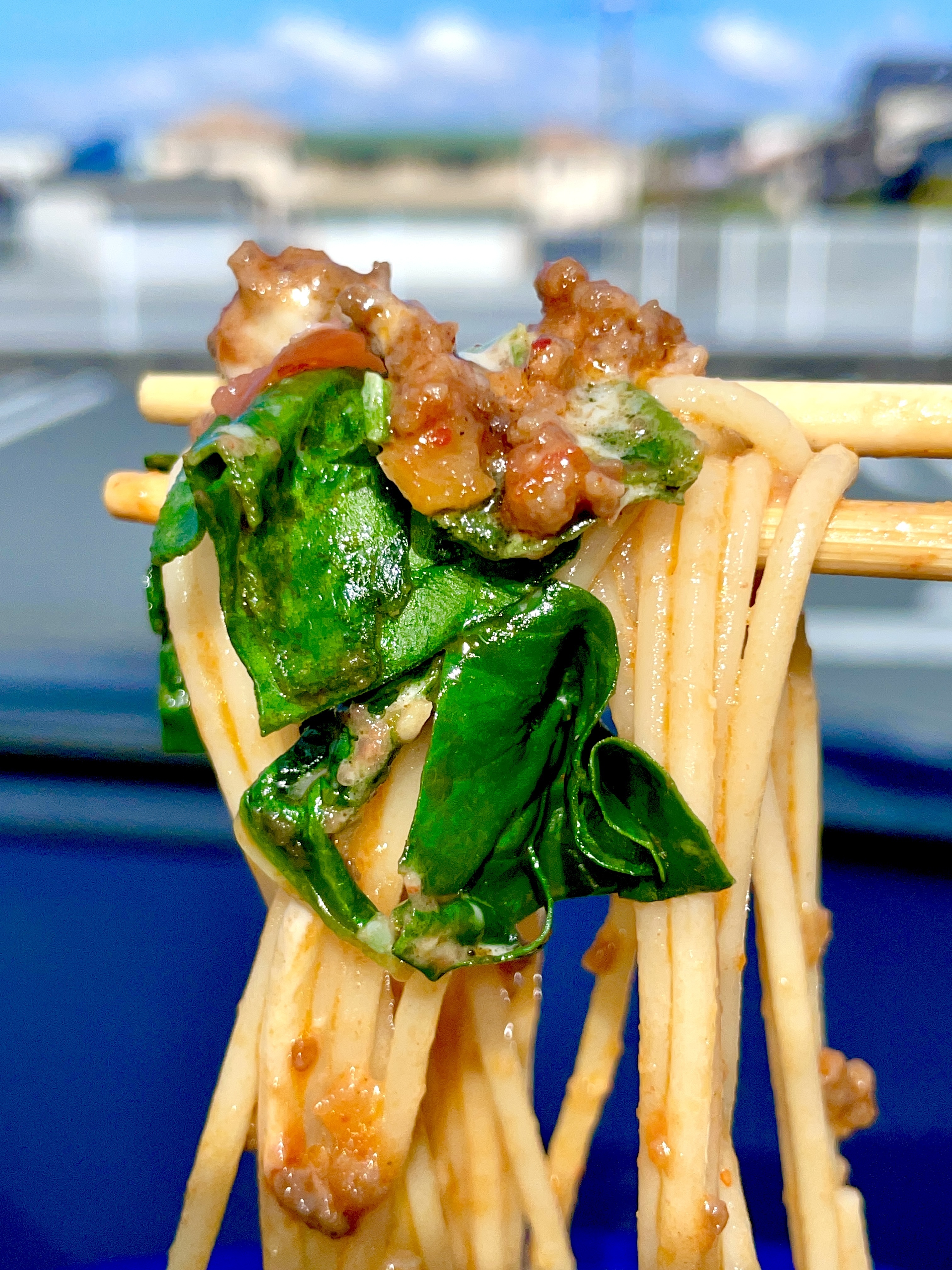 ガーリックの味わいが効いたミートソースは