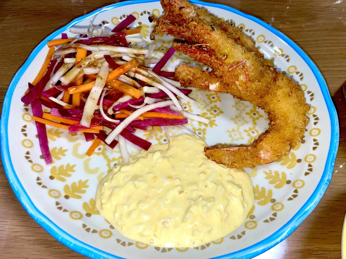 サラダに大根、紅丸、人参、深ねぎを使用して