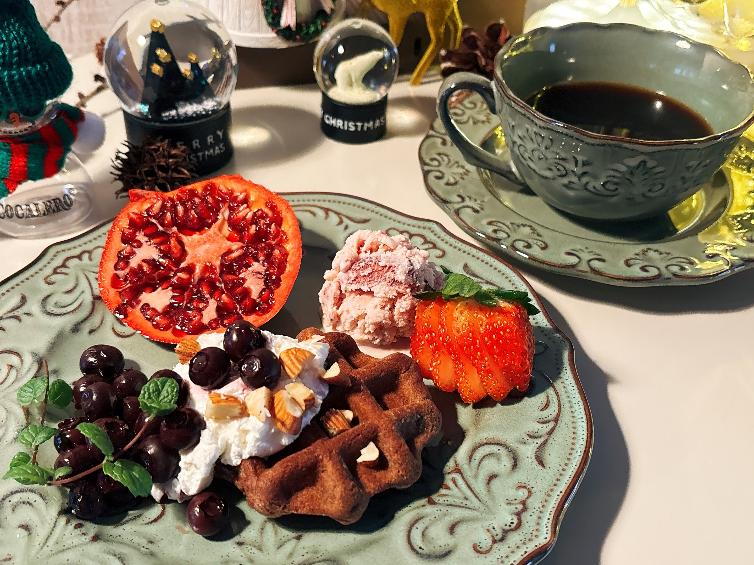 投稿を表示フルーツにワッフルにホテルの朝ごはんみたいですね✨️