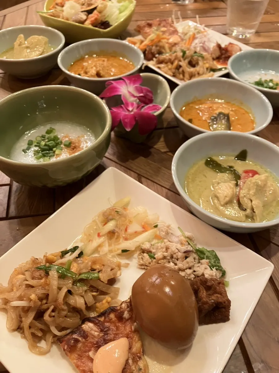 トップ > 写真館 > 今日のしあわせごはん > タイ料理でlunchタイム ポクテ 2025/09/05 18:46 タイ料理でlunchタイム 今日は仲良しの先輩達とお気に入りのタイ料理店で幸せlunch💕💕 大阪でタイ料理を食べるなら私はいつもここです✨ 大使館公認で料理長は時々タイへ帰国して流行を仕入れてきたりして不定期に閉まってることもあったり🤭 味も日本人に合わせてマイルドにしてくれていますが、本場よりで辛さもしっかりあります💕 甘エビやカオマンガイ、パッタイ、ヤムウンセン、グリーンカレー✨✨✨ 好きなもんづくしで食べ放題は最高🤩 美味しいひと時でした🥰 いいね 共有する 共有する X facebook LINE リンクをコピー コメントする 5 件の返信 (新着順) ミュートしたユーザーの投稿です。 投稿を表示 えいと 2025/09/14 21:57 食べ放題幸せですね とってもおいしそうです マイルドな辛さがありがたいですね✨ いいね 返信する ミュートしたユーザーの投稿です。 投稿を表示 ポクテ 2025/09/15 13:32 えいと 本当に美味しいんですよ💕💕💕 特に甘エビが美味しくてめっちゃたべるので元は取れてると思います(笑)😋 いいね 返信する ミュートしたユーザーの投稿です。 投稿を表示 えいと 2025/09/15 22:44 ポクテ ポクテさんのおかげで食べた気分になりました〜 甘エビ🦐✨ 元取れるし美味しいし最高ですね お写真たくさんありがとうございます😊 いいね 返信する ミュートしたユーザーの投稿です。 投稿を表示 さくら 2025/09/05 20:57 素敵なランチですね。 いいね 返信する ミュートしたユーザーの投稿です。 投稿を表示 ポクテ 2025/09/05 21:55 さくら ありがとうございます✨ いいね 返信する ミュートしたユーザーの投稿です。 投稿を表示 ウルトラの母 2025/09/05 20:48 美味しそうで いいね 返信する ミュートしたユーザーの投稿です。 投稿を表示 ポクテ 2025/09/05 21:54 ウルトラの母 ありがとうございます✨ タイ料理食べたくなるといつもここに行っちゃいます😁 いいね 返信する ミュートしたユーザーの投稿です。 投稿を表示 tan 2025/09/05 20:43 本格的なタイ料理なんですね 大阪?なんと!😆 いいね 返信する ミュートしたユーザーの投稿です。 投稿を表示 ポクテ 2025/09/05 21:54 tan そうなんです✨ 大阪の南にありますよ😚 いいね 返信する ミュートしたユーザーの投稿です。 投稿を表示 さぁちゃん 2025/09/05 19:21 羨ましい✨✨ めちゃくちゃ美味しそうです。 見たことない料理も魅力的! パッタイ、食べたいです♡ いいね 返信する ミュートしたユーザーの投稿です。 投稿を表示 ポクテ 2025/09/05 21:53 さぁちゃん 種類多くて楽しいですよ✨✨😊 パッタイは甘めでまたまたこれが美味しい👍 いいね 返信する ミュートしたユーザーの投稿です。 投稿を表示 さぁちゃん 2025/09/05 23:03 ポクテ やられたぁ笑 いいね 返信する