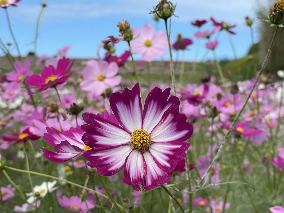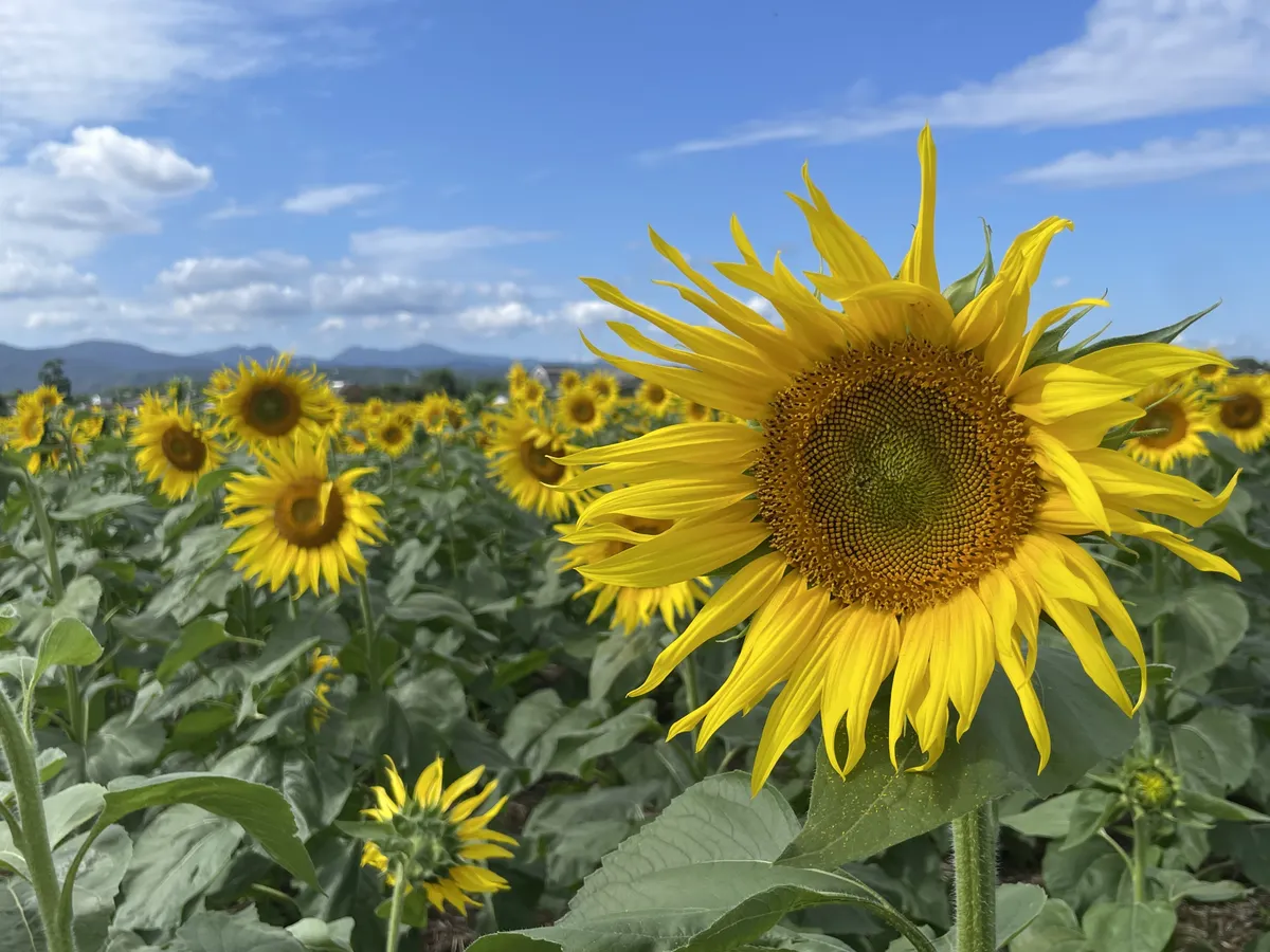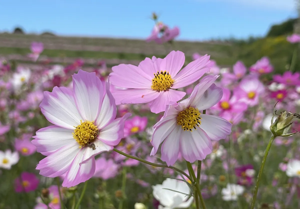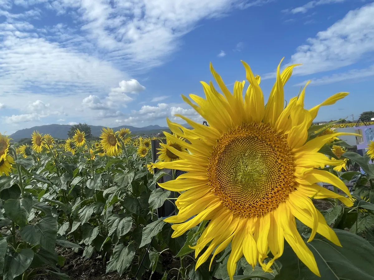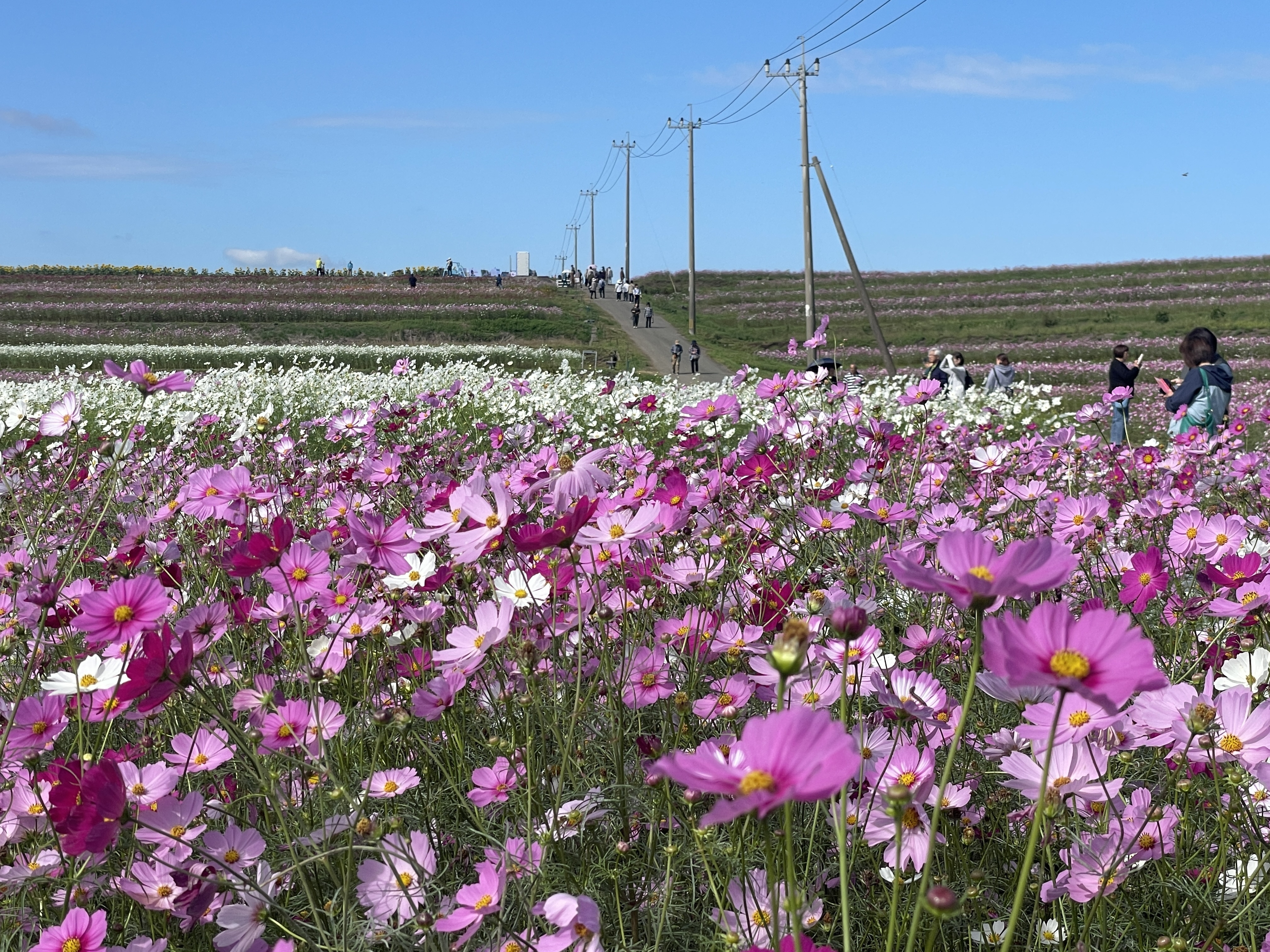 投稿を表示秋晴れにたくさんのコスモスが映えて、素敵ですね。ヒマワリ観賞も楽しめて、いいですね。