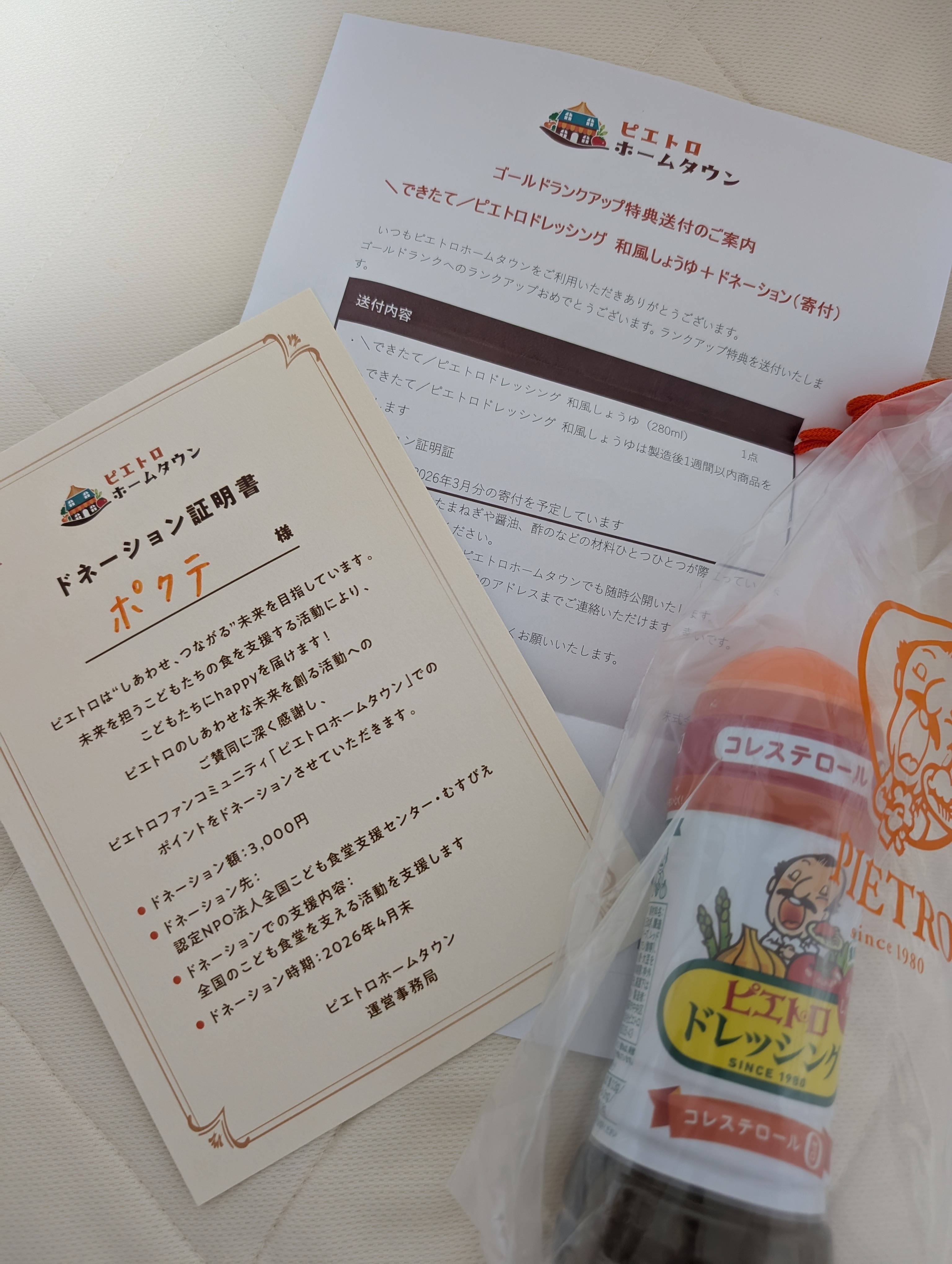 つい先程ゴールドアップ特典の出来たてドレッシングが我が家に届きました😆✨