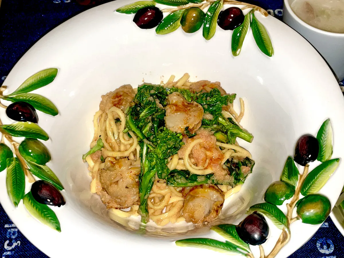 投稿を表示ほたてと菜の花の明太パスタとっても春らしくておいしそうですね✨