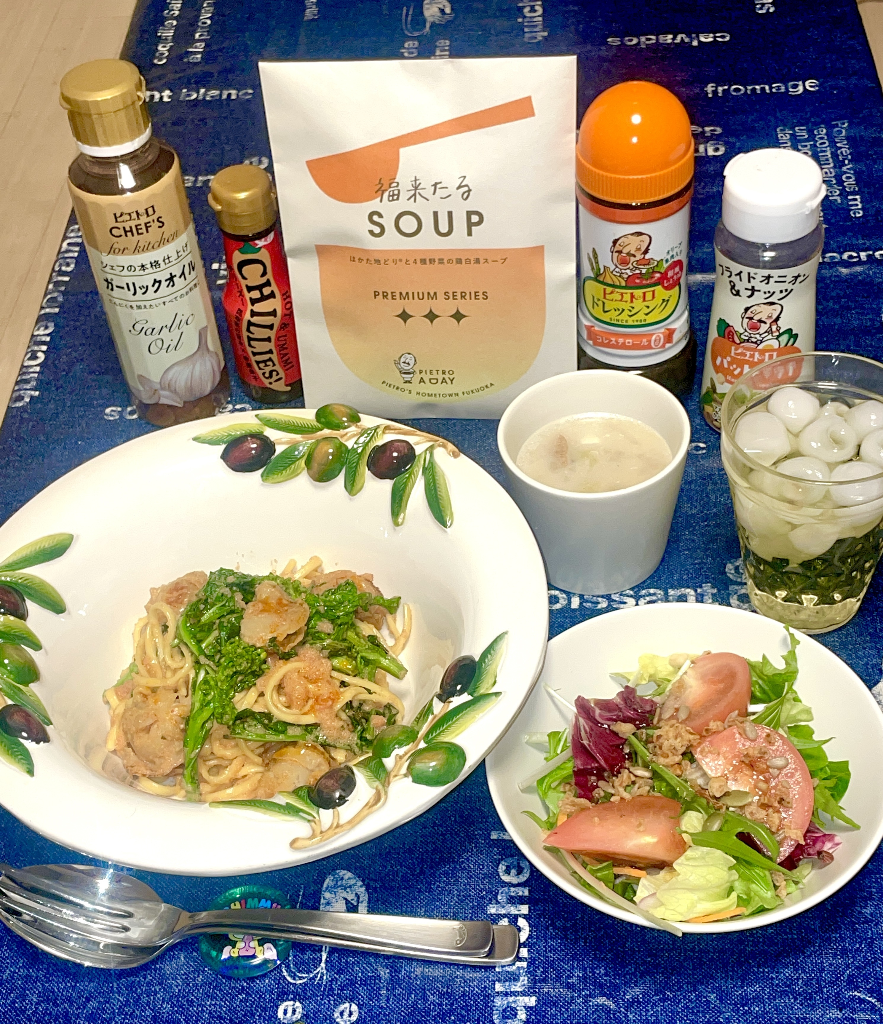 お皿もおかあさまが揃えられたのかな?とってもおしゃれでパスタによく合ってますね