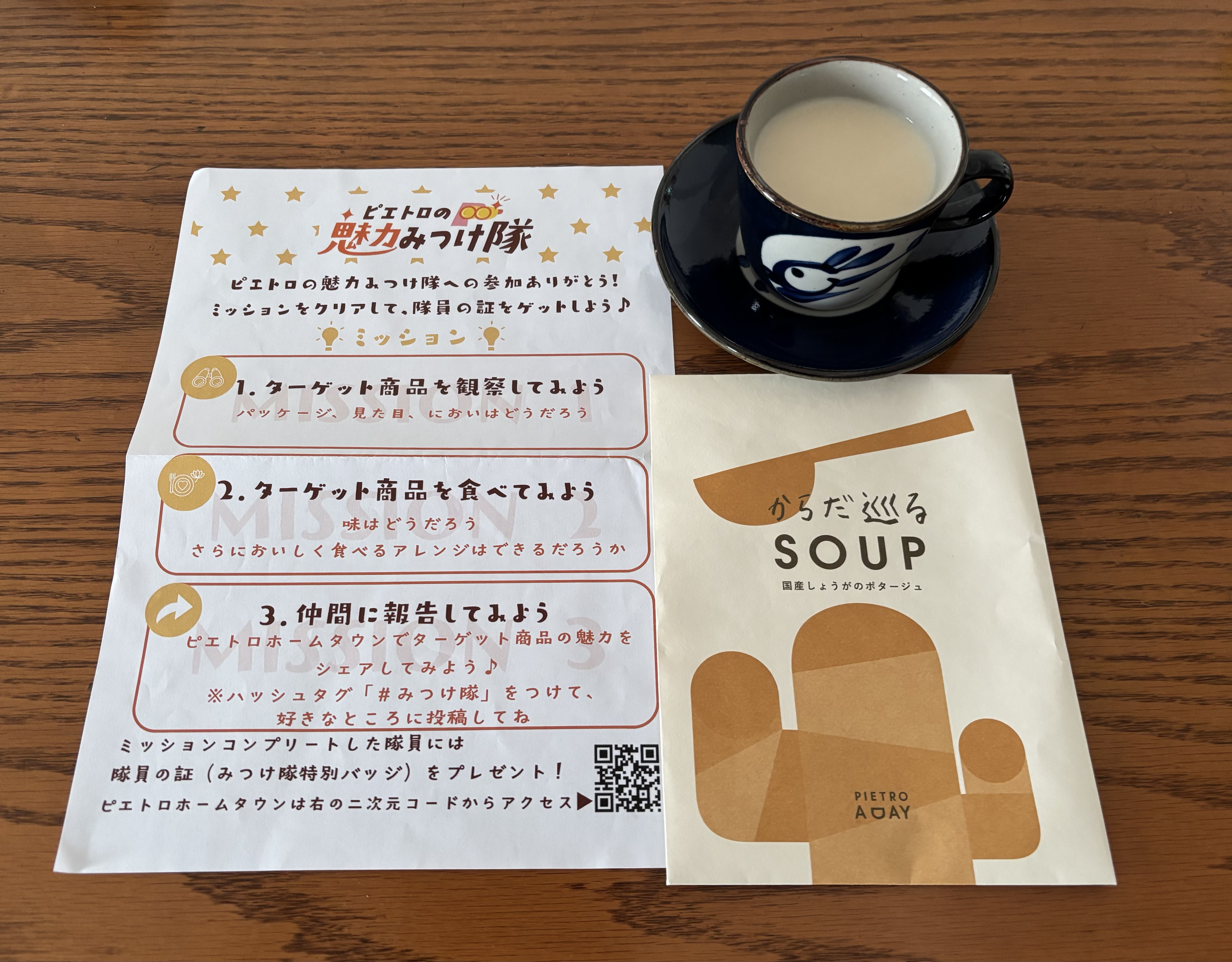ミッション3 皆さん、寒い日にぴったりのSOUP、美味しい国産しょうがのポタージュを飲んで体調を整えましょう♪