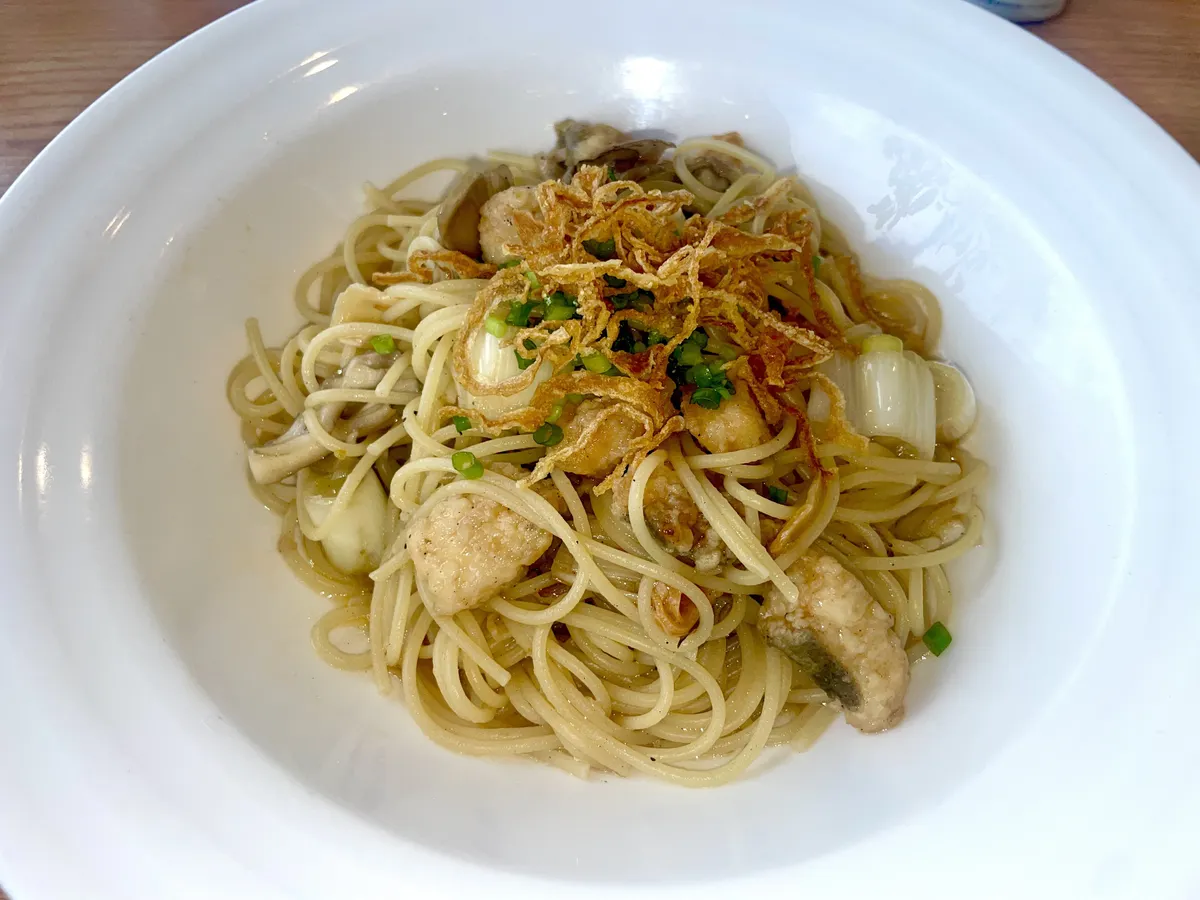 私【本日の魚と舞茸の柚子胡椒ペペロンチーノ】