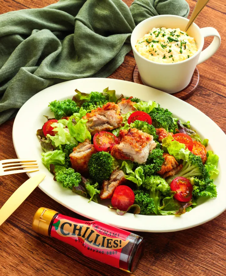 鶏唐揚げの下味にCHILLIESを使ってピリ辛味に仕上げました。