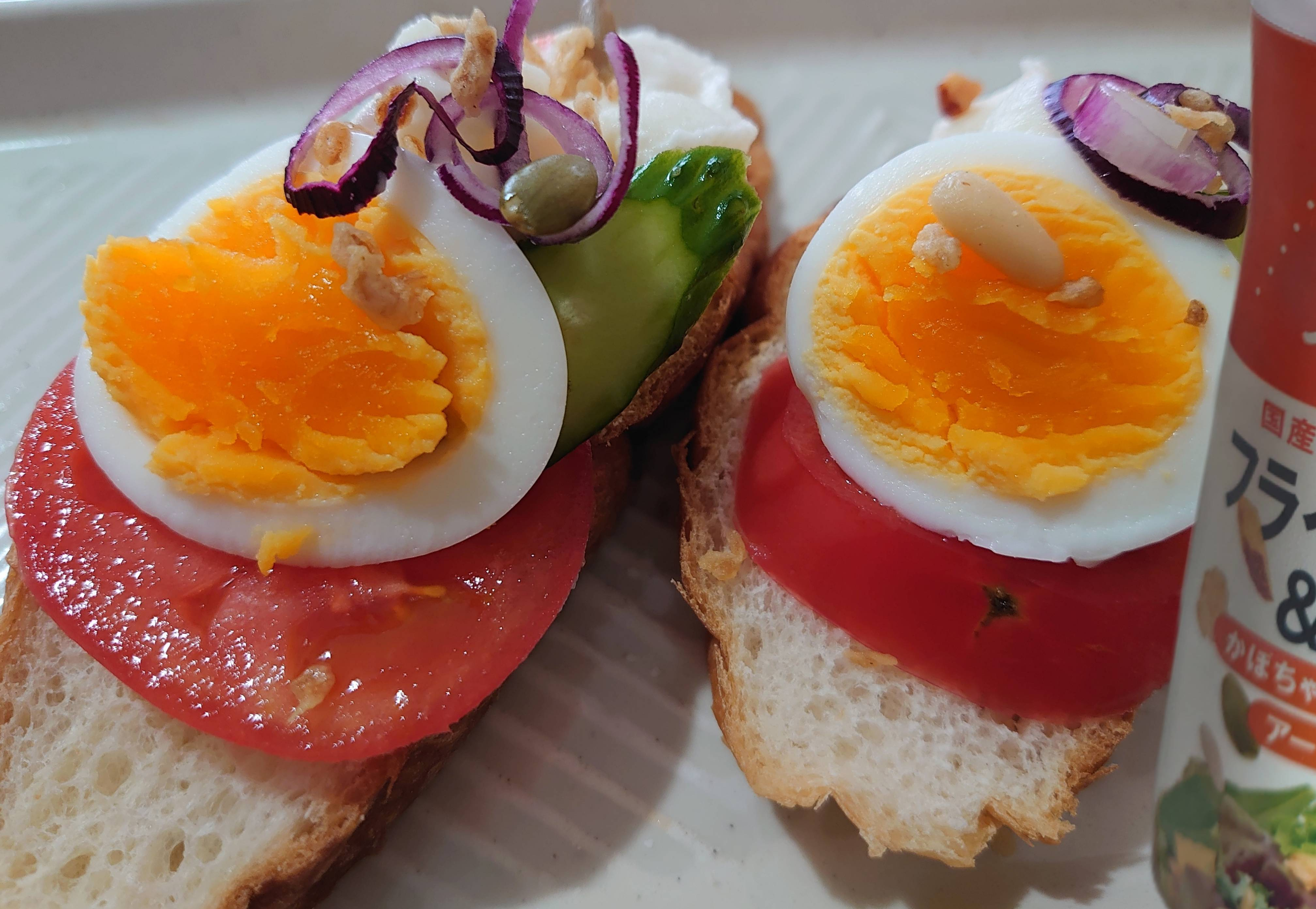 オープンサンド、オシャレで美味しそうですね😋ついついパンとサラダにしてしまいます💦
