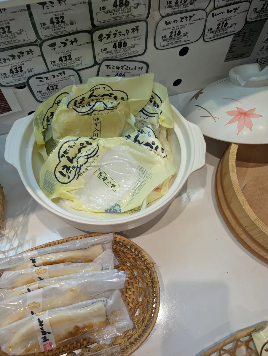 お店の方に聞くともともとはすり身に山芋を混ぜて作った物らしく、今スーパーに並んでいるはんぺんは発泡剤で膨らましているんだそうです。