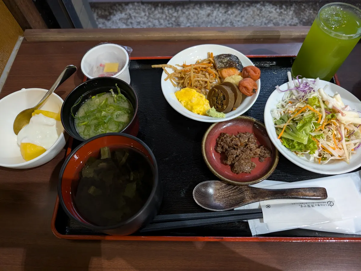 きんぴらや卵料理納豆やウインナー、パンいろいろありましたよ~🤭