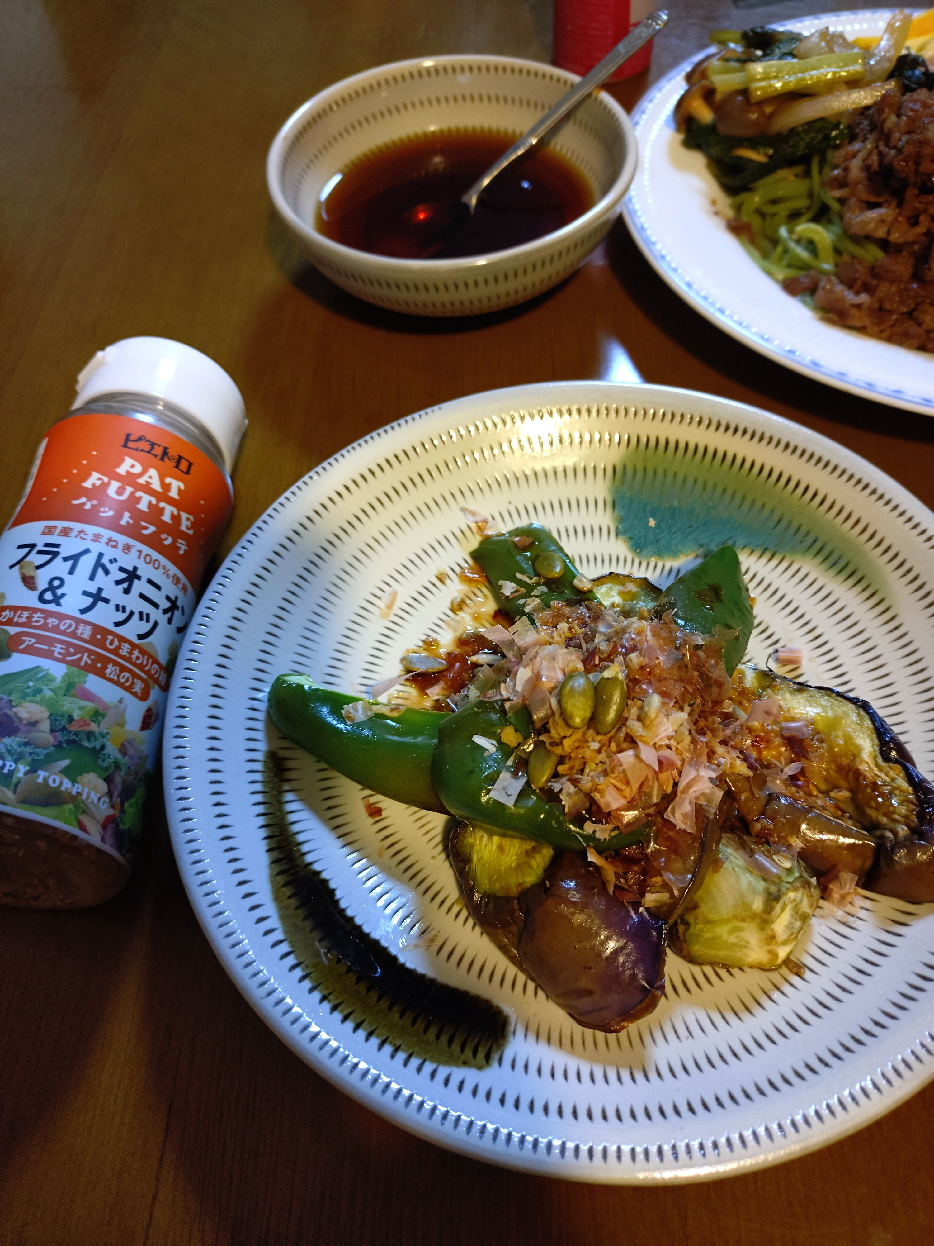 トップ > ピエトロおじさんのキッチン > PATFUTTE(パットフッテ) > 【19日目】焼きなす、焼きピーマンにパットフッテ ペスカ 2025/08/22 19:28 【19日目】焼きなす、焼きピーマンにパットフッテ 【19日目】 フライパンでじっくり焼いたなすとピーマンにかつお節、醤油、そしてパットフッテ いいね 共有する 共有する X facebook LINE リンクをコピー コメントする 0 件の返信 (新着順)