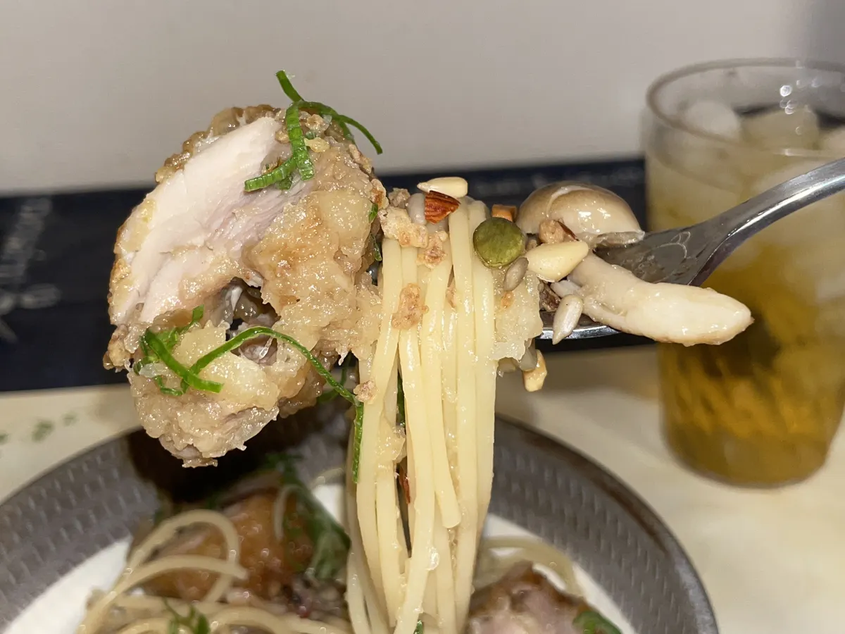投稿を表示からあげが入ってますがかぼすと大根おろしであっさり行けそうですね😋