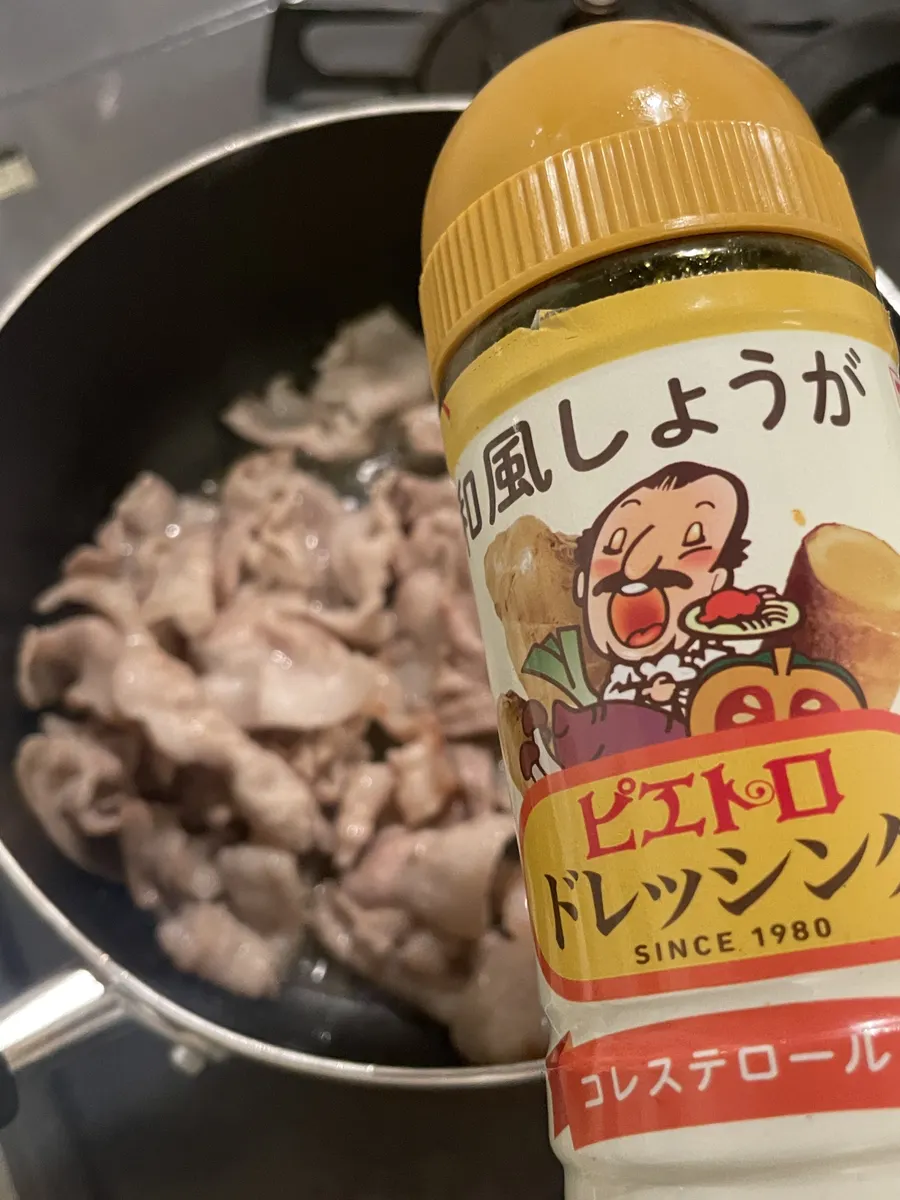 投稿を表示私も豚肉をショウガドレッシングでやります。美味しく同じように先に炒めて、取り出し火を止める直前に入れます
