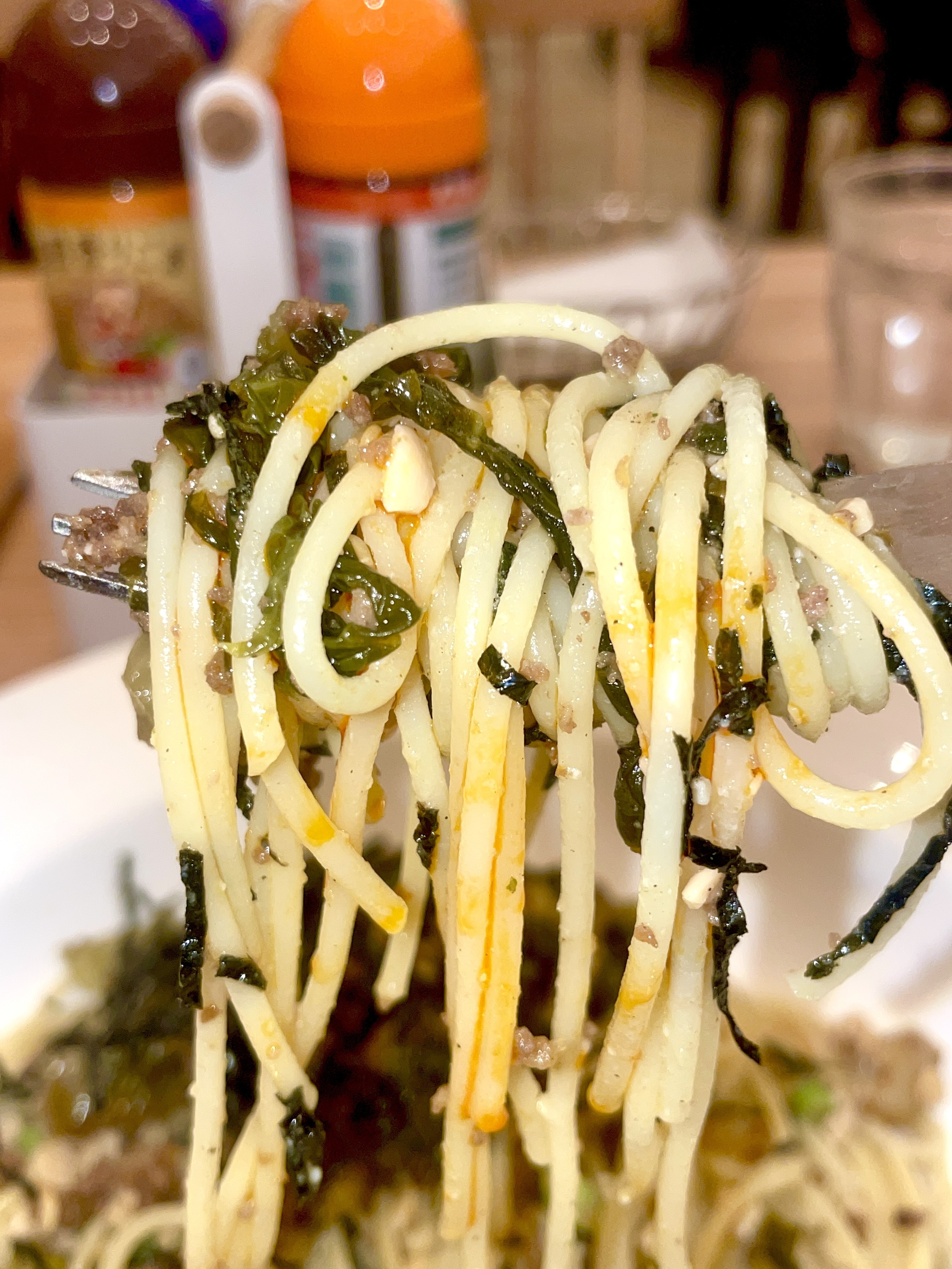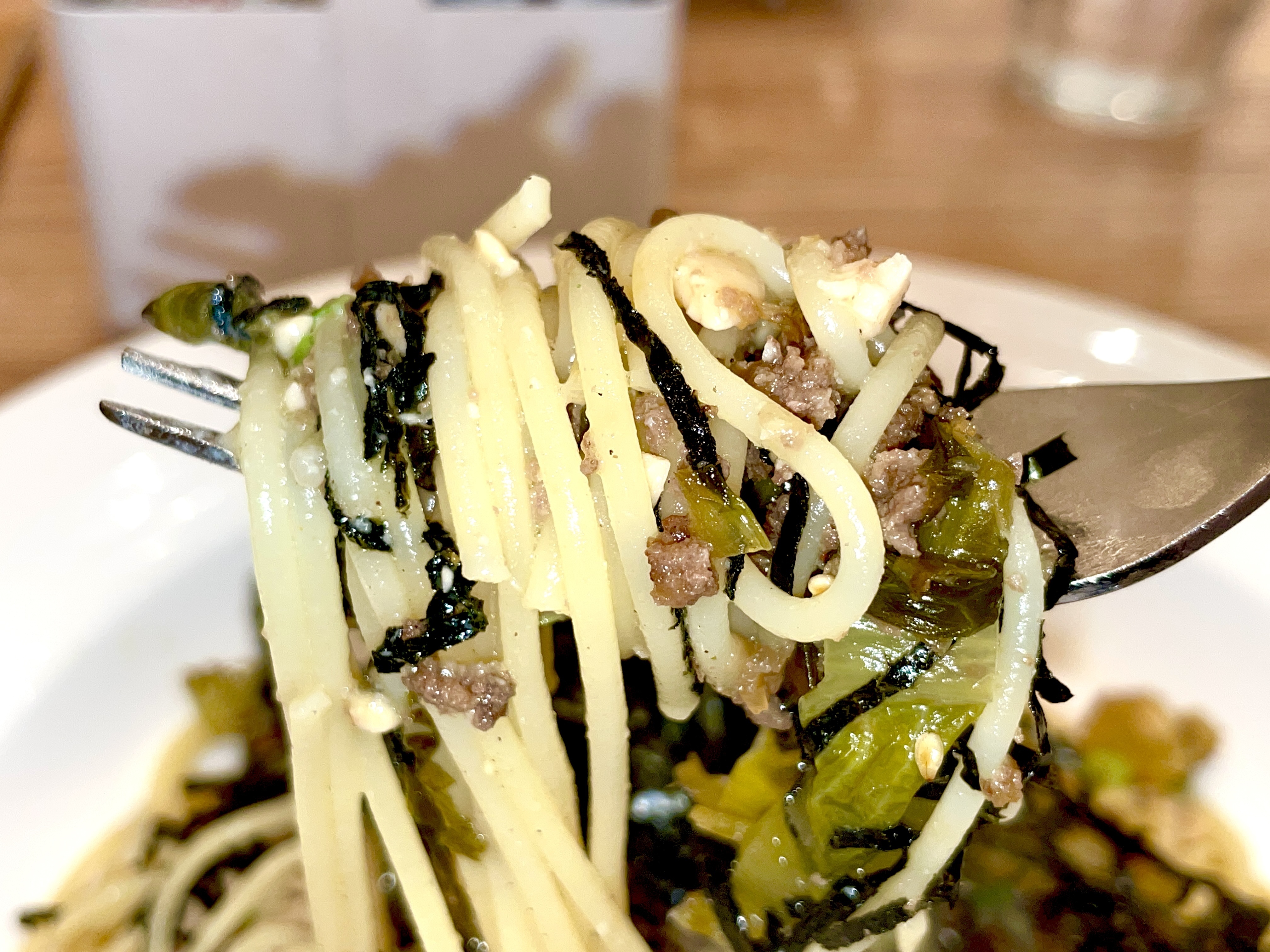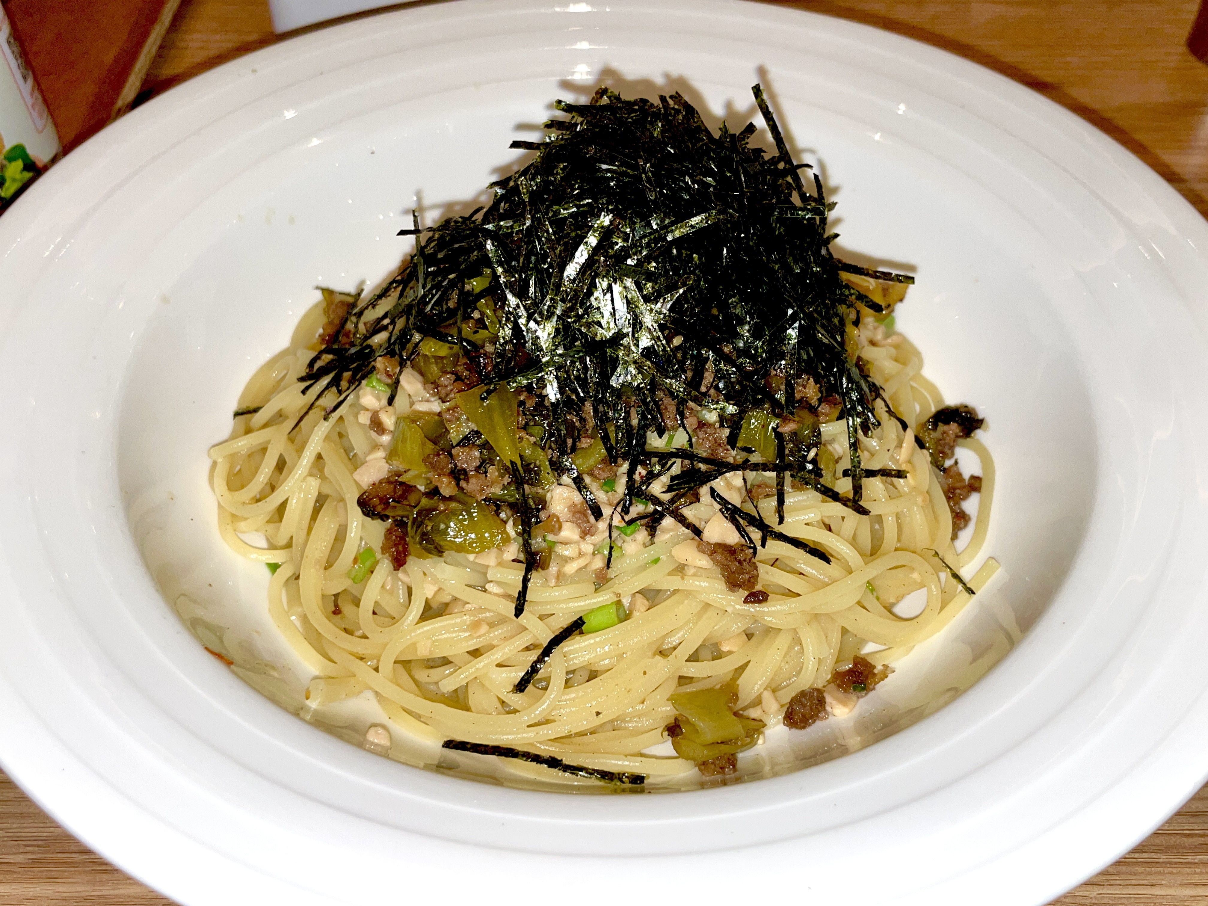 【納豆と高菜+ひき肉】のパスタに