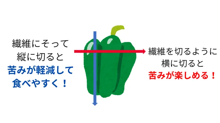 私はピーマンの切り方で苦みの感じ方が変わることにびっくりしました😶