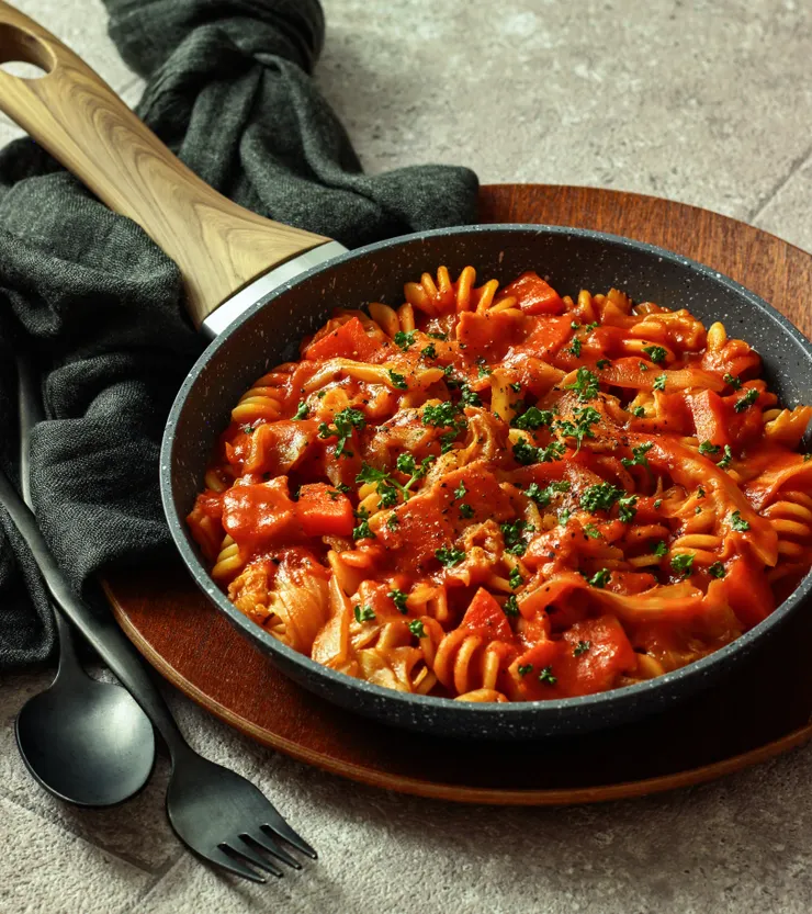 春キャベツでフジッリトマトパスタ ~味変にCHILLIES~