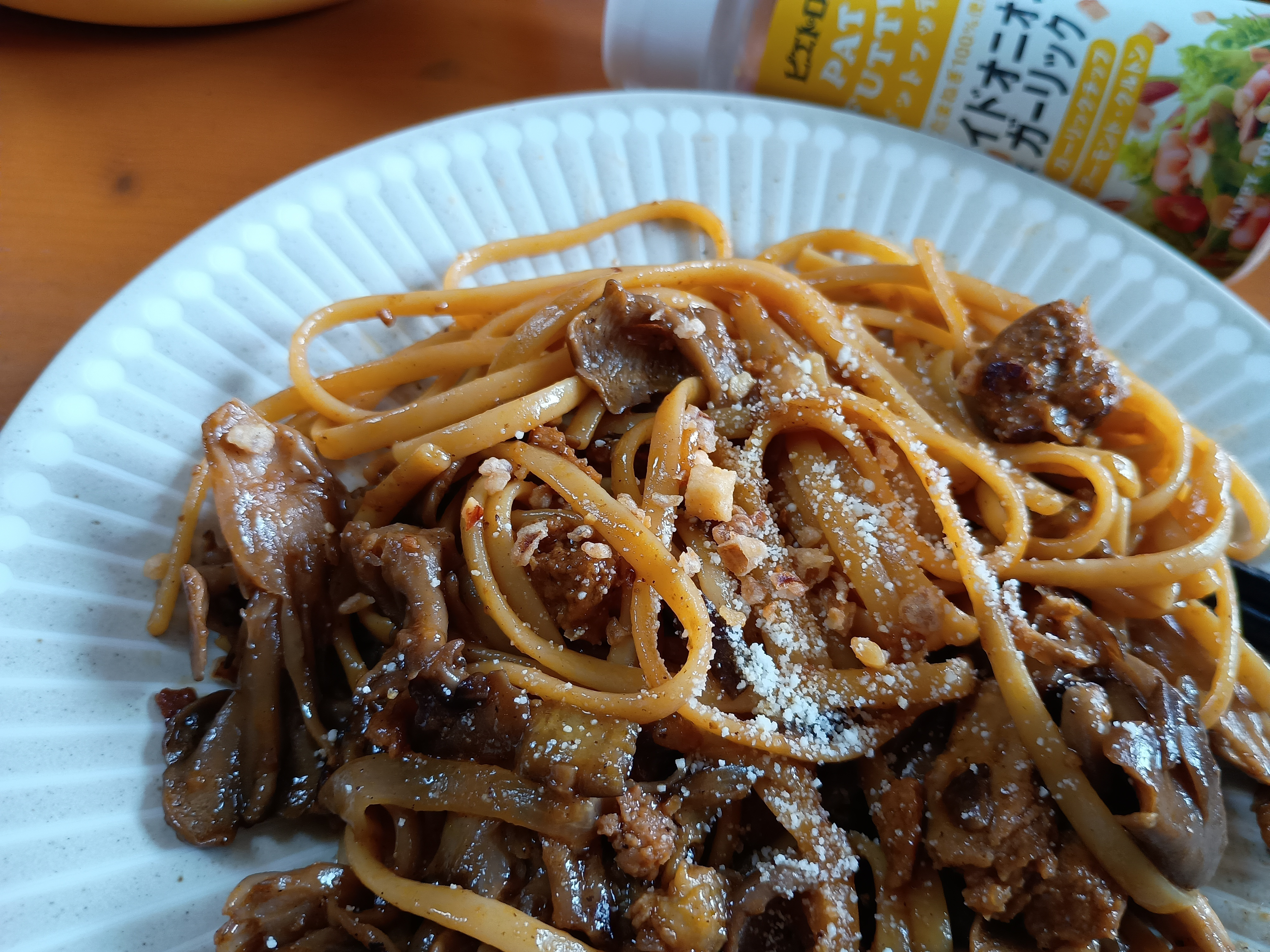 舞茸や茄子とハンバーグを崩してボロネーゼにしてみました😊ハンバーグボロネーゼ美味しかったです😊