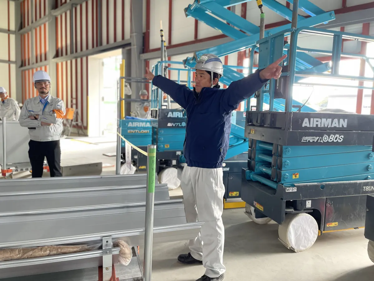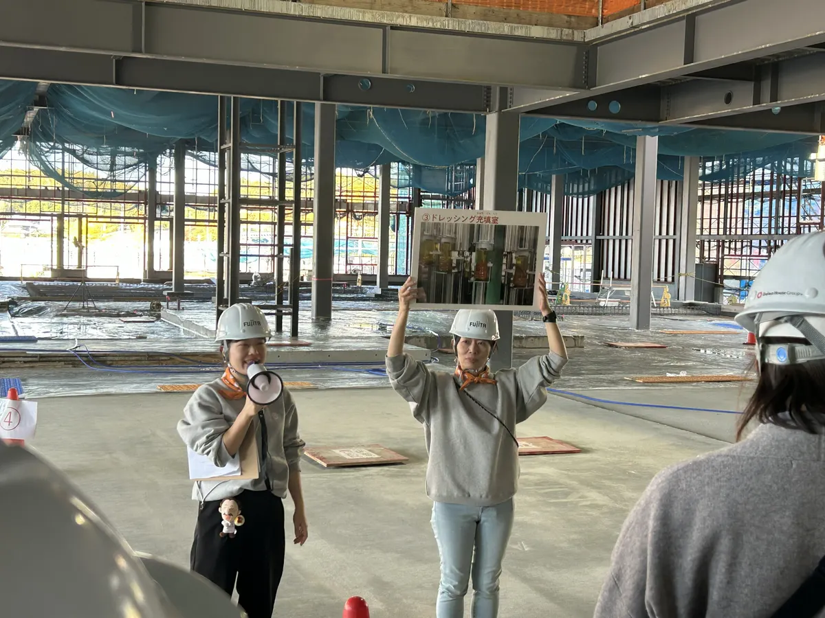 製造が行われる予定のエリアに足を踏み入れ、どの場所で何の商品が作られるかを見たり、