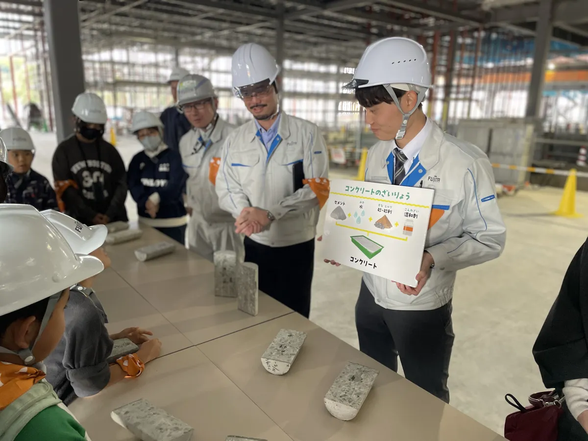 コンクリートの作り方や、断面が見やすいように半分に加工したものもご覧いただきました!