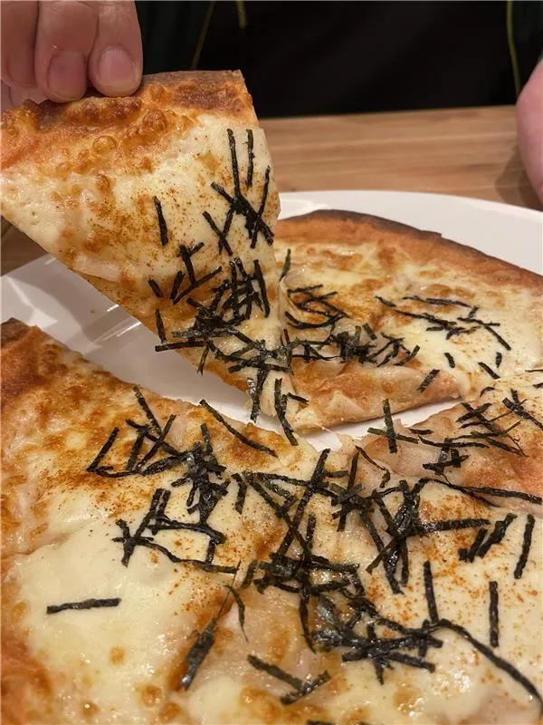 お餅のもちもち食感とピザのサクサク生地の相性がよくて、食感もたのしむことができる一品です!