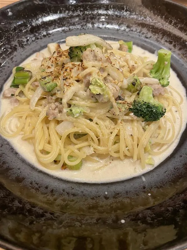 白ネギ、ブロッコリー、白菜の3種類の冬野菜が、濃厚なクリームソースと絡んでどこかホッとする味わいです。