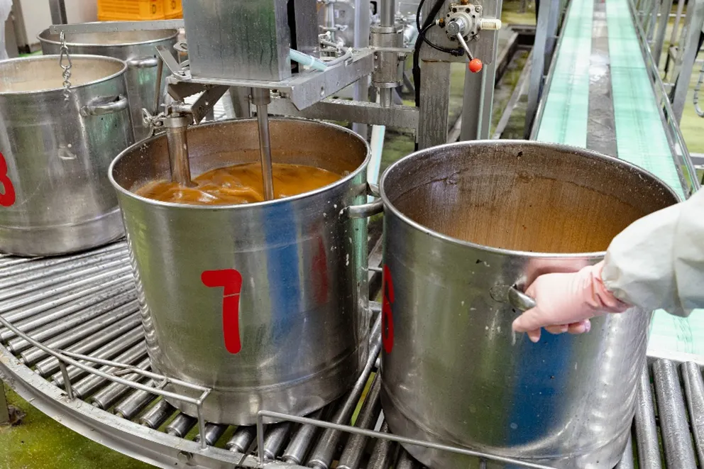 ピエトロドレッシングは、甘みがあるしょうゆ、そして、厳選した国産たまねぎ、オリーブや、ピメント、にんにくなどのこだわりの食材を使用して、寸胴鍋で丁寧につくっています😊
