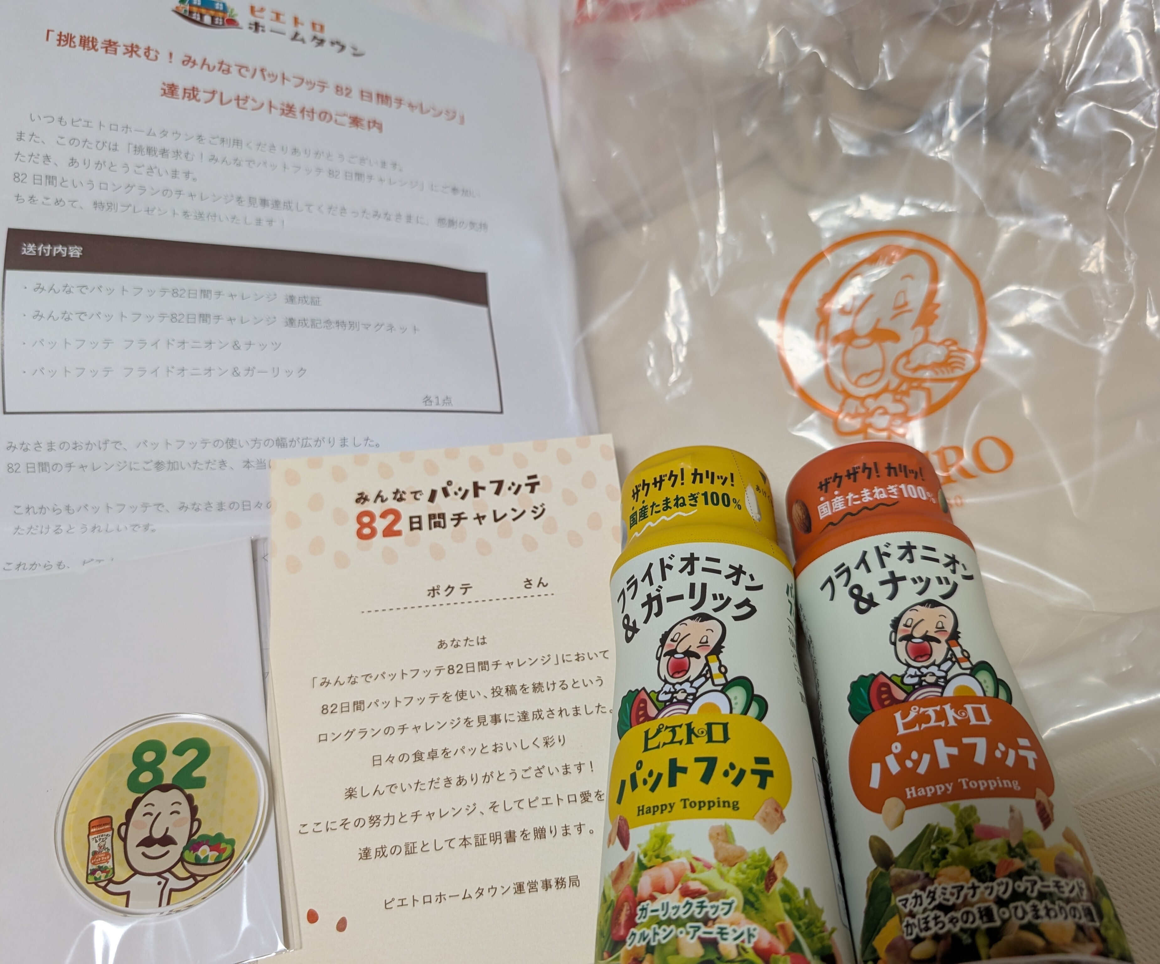 昨年のパットフッテ82日間チャレンジ達成の記念品が届きました✨✨
