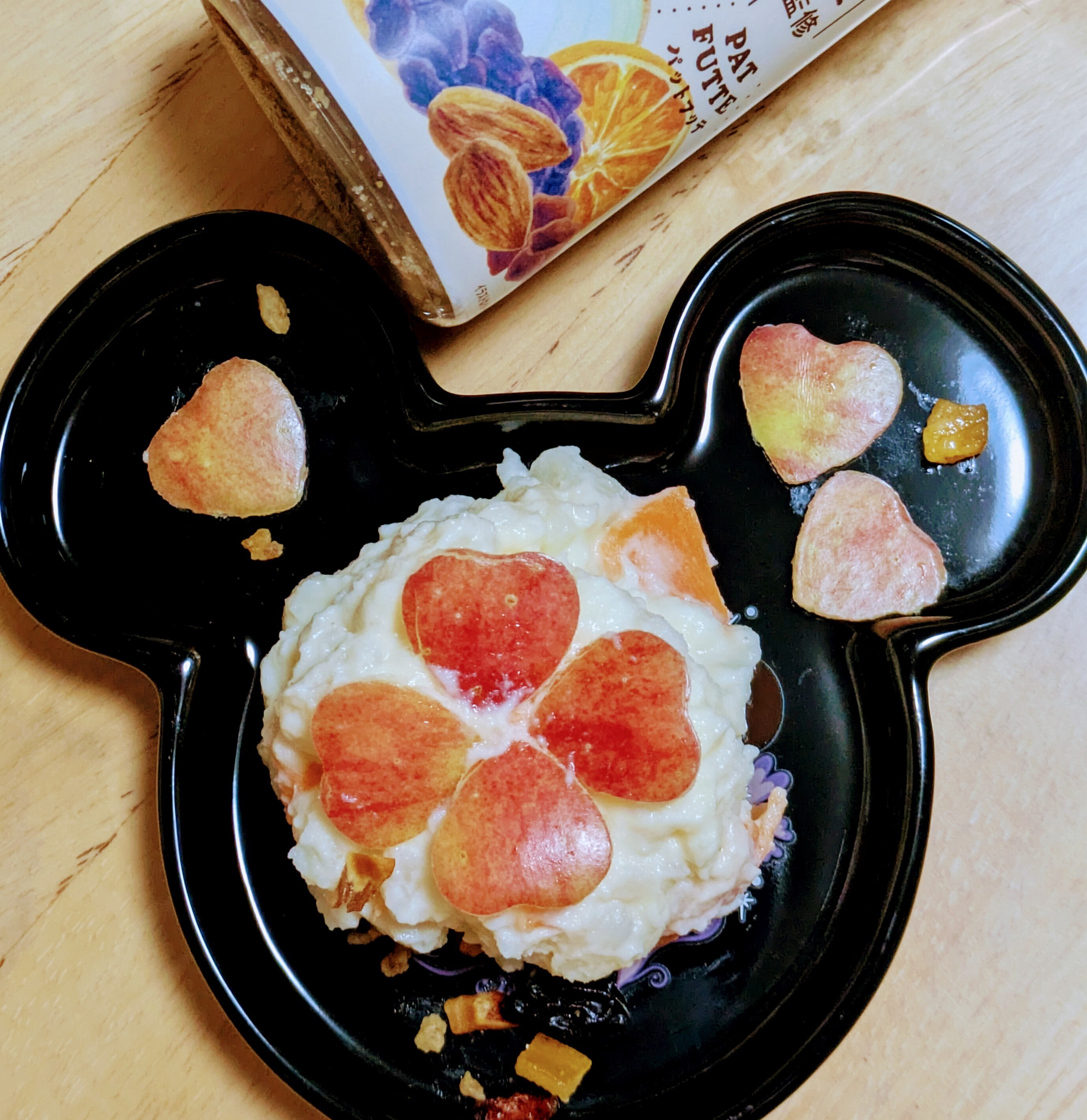 ミッキーさんのお皿?ドレスアップしたポテサラが、えっへん!て感じです😋