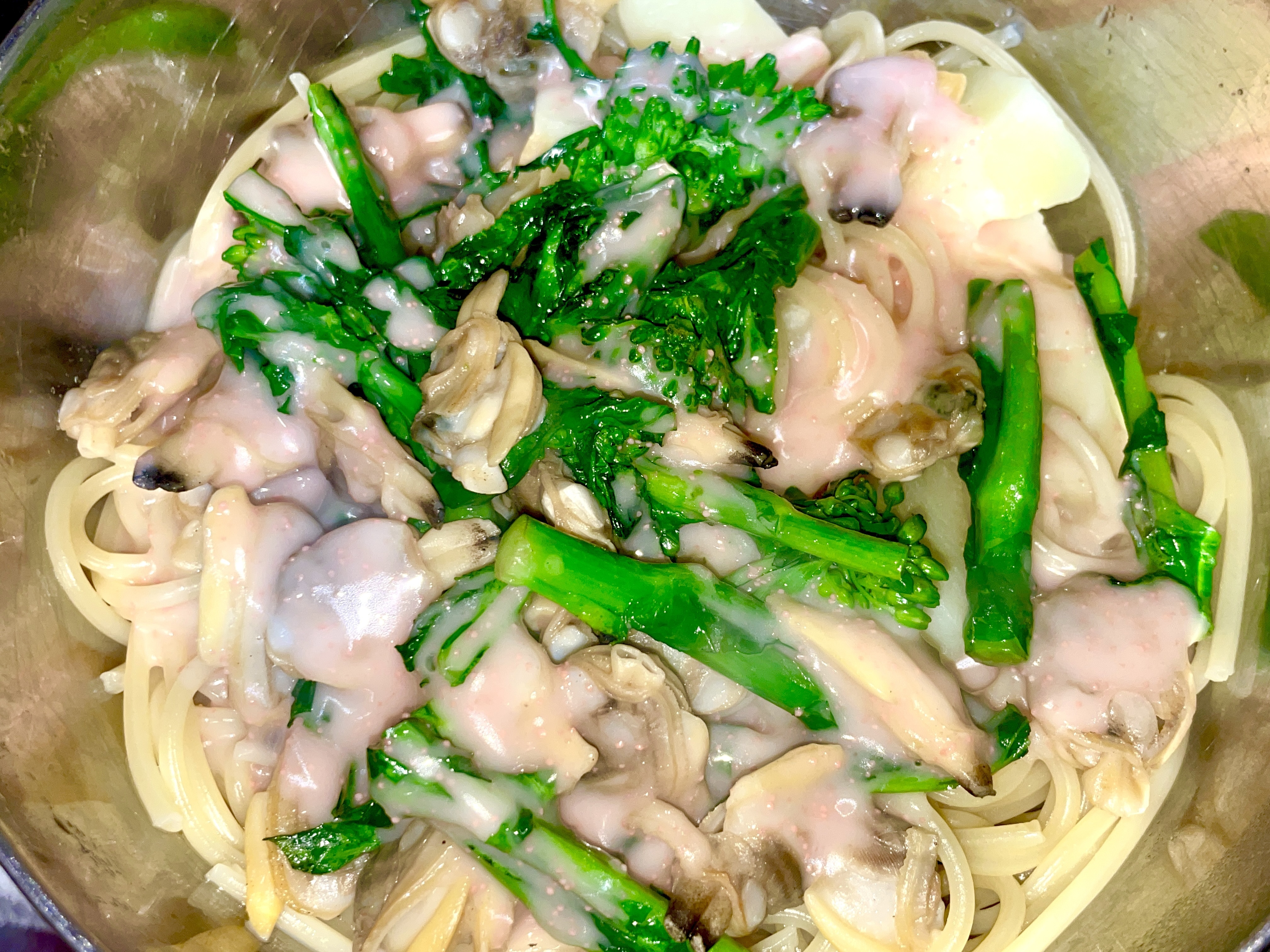 投稿を表示あさりって和風であっさりのものが多いイメージですが、こちらはたらこソースで濃厚な一品ですね❤️