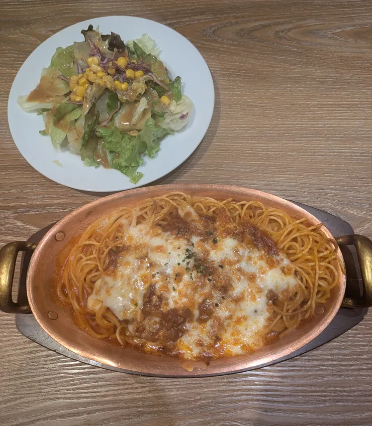 ミートスパゲティグラタンは麺がカリッとした所があってソースも美味しかったです✨
