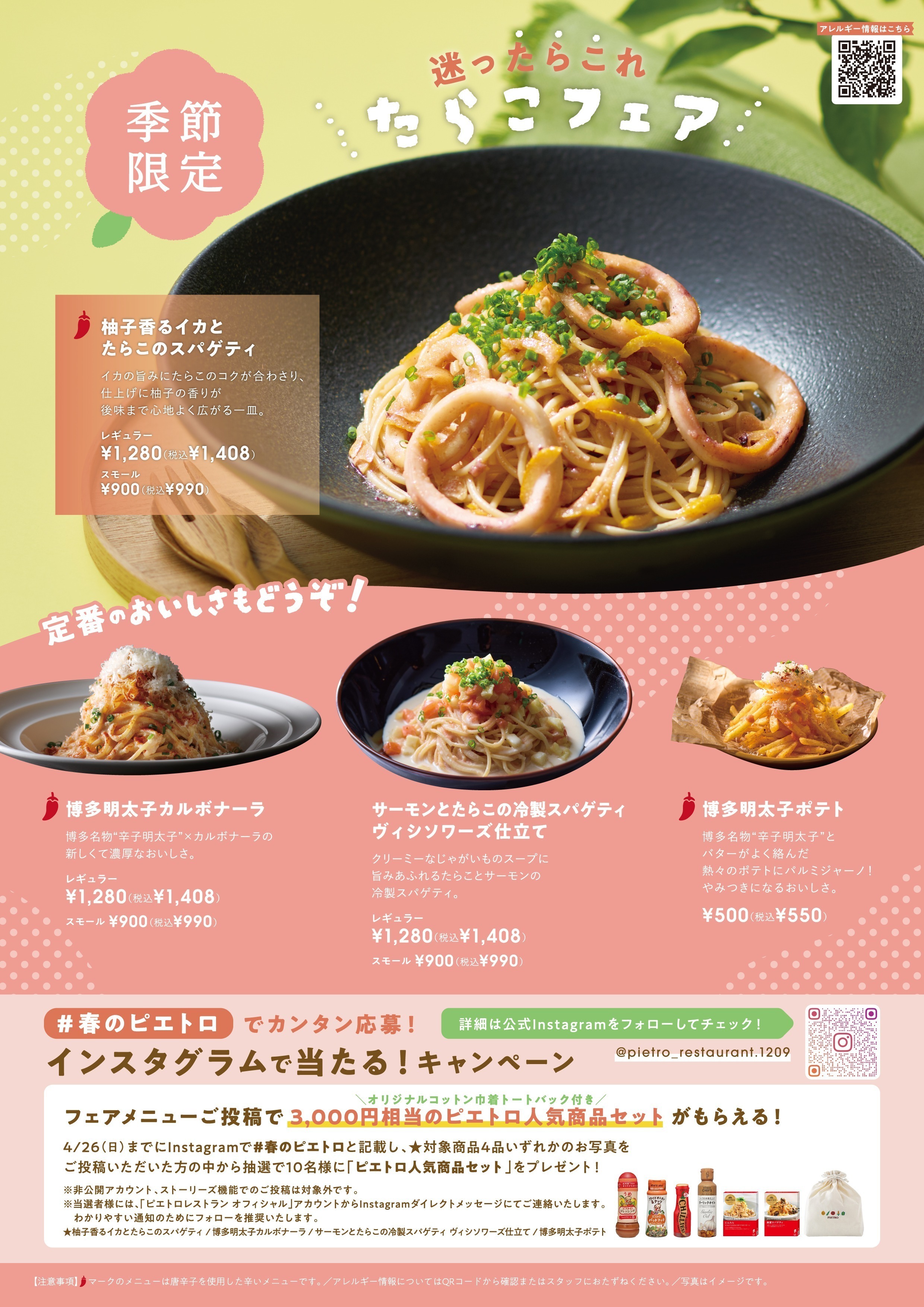 ピエトロレストランでは3月4日(水)~4月26日(日)に季節限定「たらこフェア」を開催中です🌸