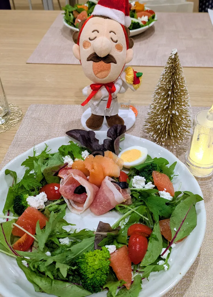皆さんと一緒に自分でリースサラダを盛り付けしました😊楽しかったです