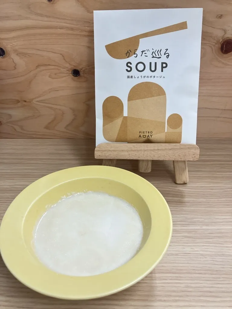 今回レポートするのは、「国産かぶのポタージュ(思いやりのSOUP)」「国産しょうがのポタージュ(からだ巡るSOUP)」「福岡産ごぼうのポタージュ(まっすぐなSOUP)」の3品です!
