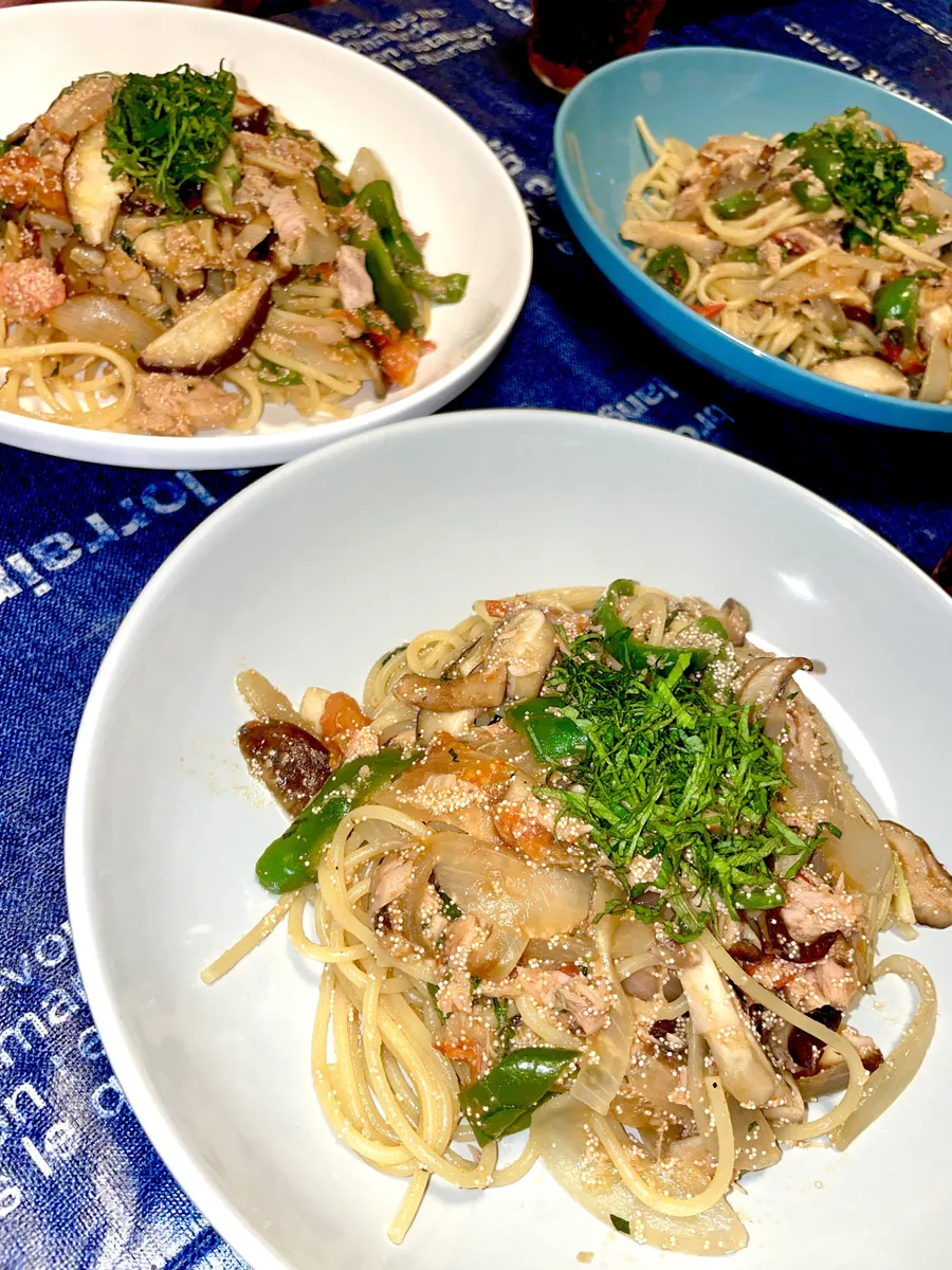 この日の夕飯に、木こり風ペペロンチーノ♪