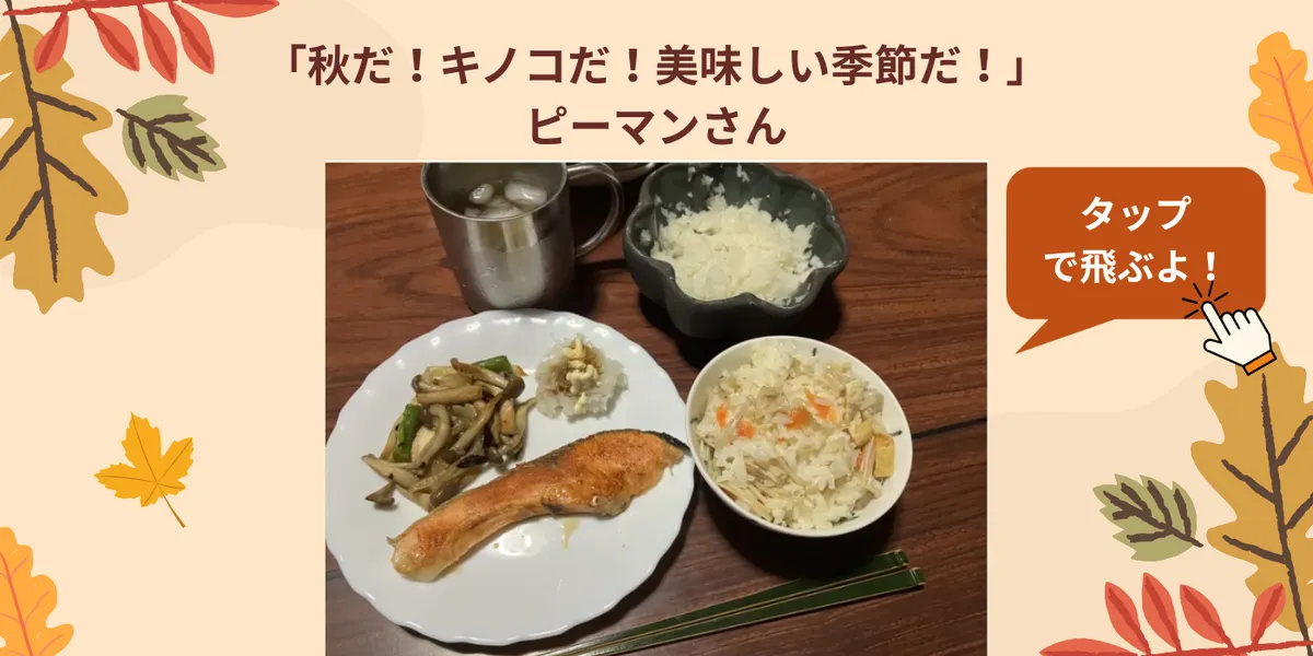 ピーマンさんはエリンギ・しめじ・えのきなど秋の味覚が満載の食卓を投稿してくれました!