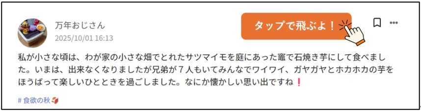 ハッシュタグ「食欲の秋🍂」の投稿は写真の有無に関わらず、秋の食にまつわることなら何でも投稿してOKです!