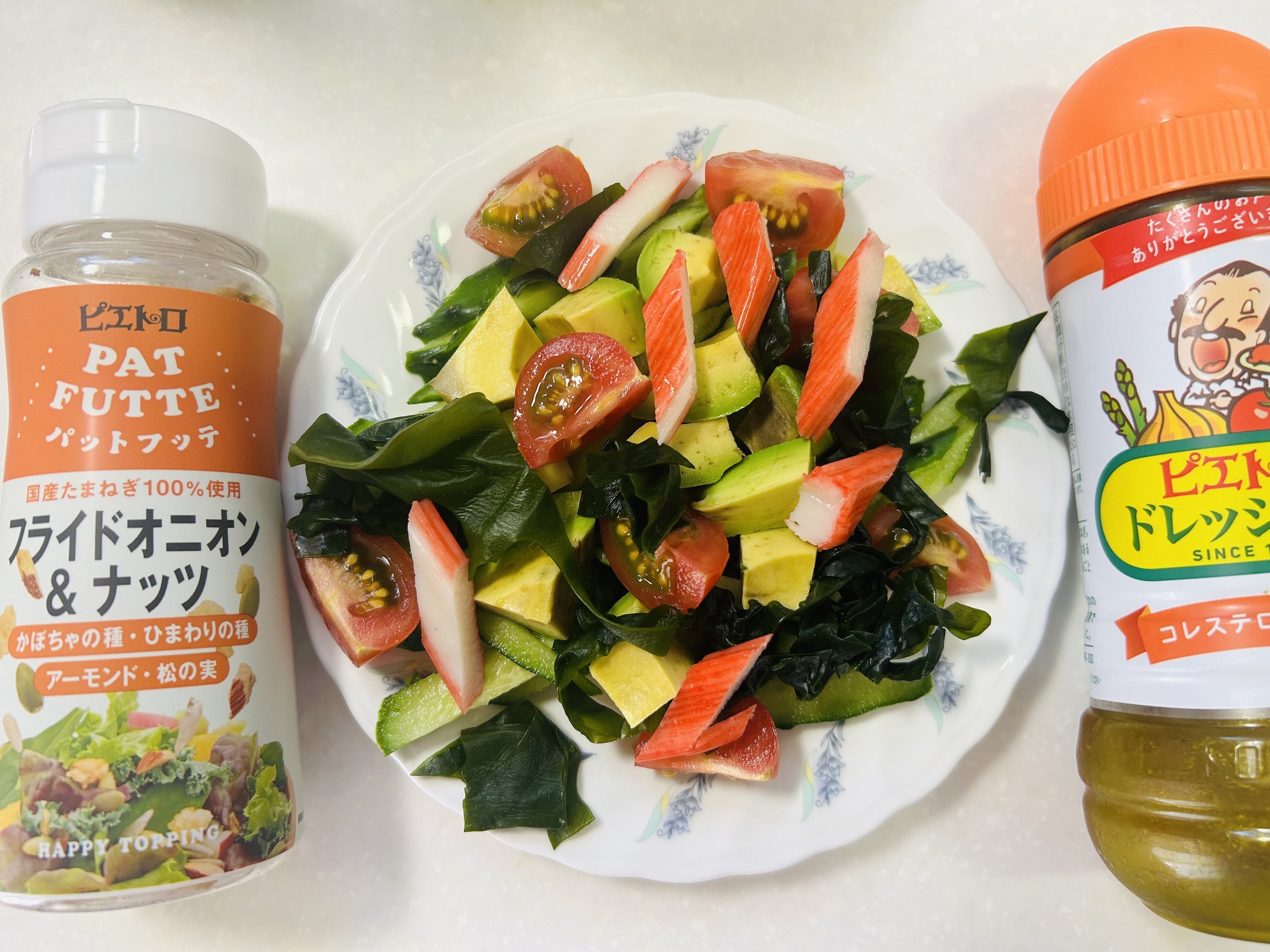 かまぼこ由来の甘み、旨みがピエトロドレッシングと相性も良く…むしろ🦀よりサラダにもってこいな食材だと私は思ってますよ♪