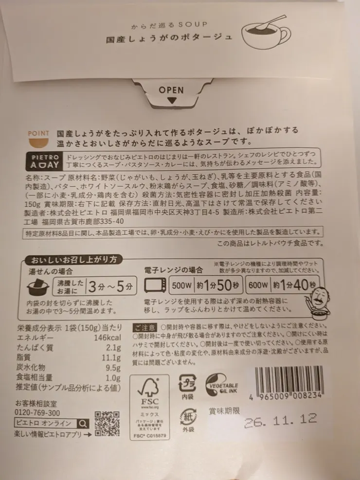 からだ巡るSOUP国産しょうがのポタージュ🫚