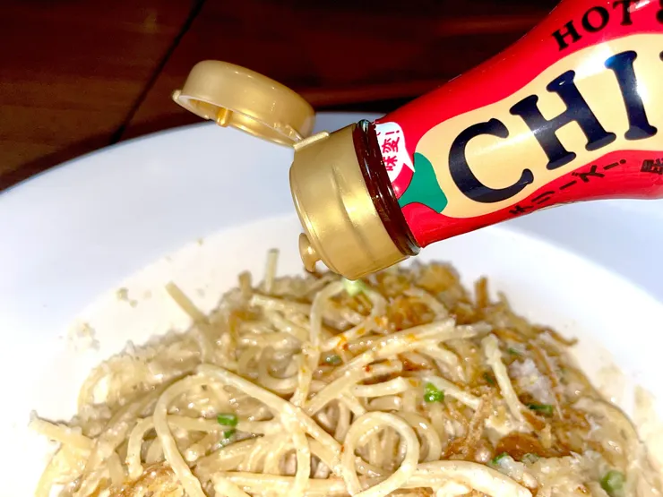 博多明太子カルボナーラにひき肉をトッピングするのもおすすめですよ🤭