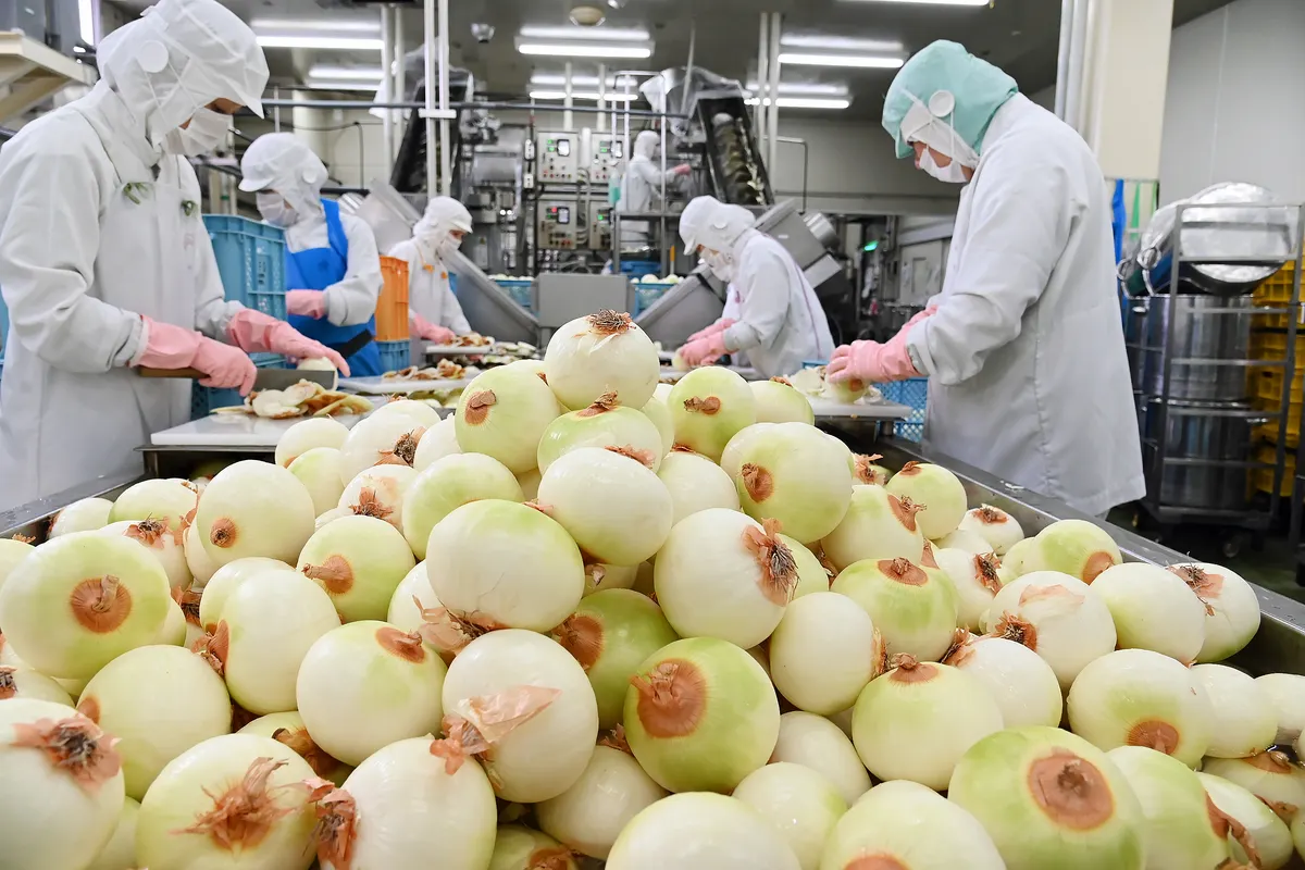 安定したおいしさを守るため、「味の番人」と呼ばれるチームが産地を視察し、季節ごとに使うたまねぎを選んでいます。選び抜かれたたまねぎがピエトロの工場に届くのは、1日あたり約5トン!🐘🐘🐘🐘🐘