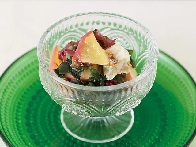 海藻ミックスと甘酸っぱいりんごを組み合わせ、和風ドレッシングで和えた、さわやかな味わいのサラダです。