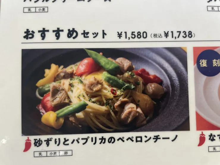 ランチメニューの8月まで限定のパスタの1つ