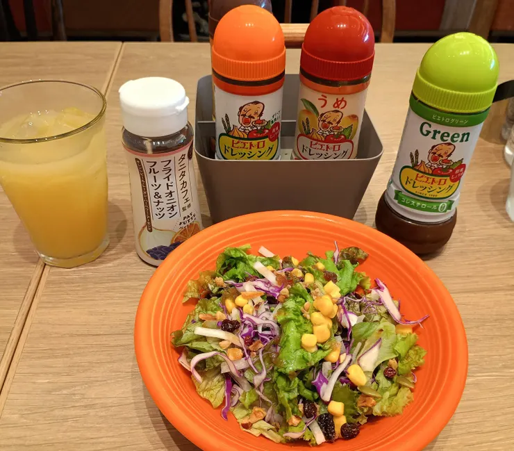 おかわりサラダは、今日は「ピエトロドレッシンググリーン+タニタカフェ監修パットフッテ」の組み合わせにどハマリ→リピートしました。
