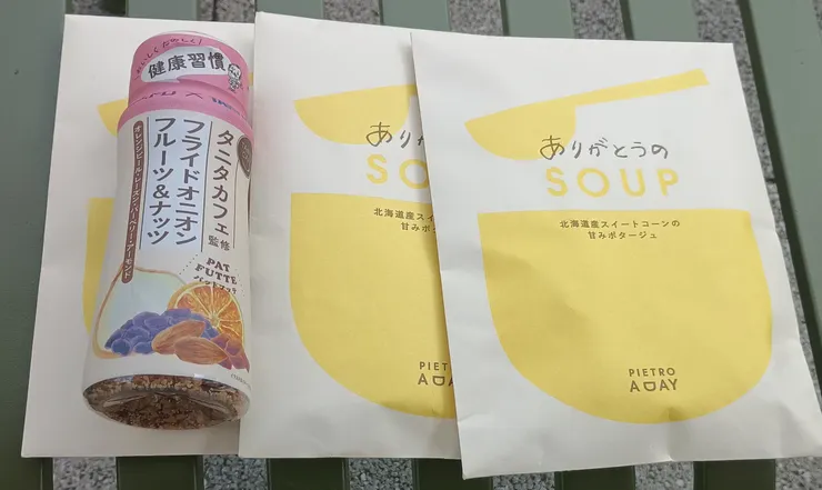 お土産に、タニタカフェ監修パットフッテ•北海道スイートコーンの甘みポタージュを買いました。