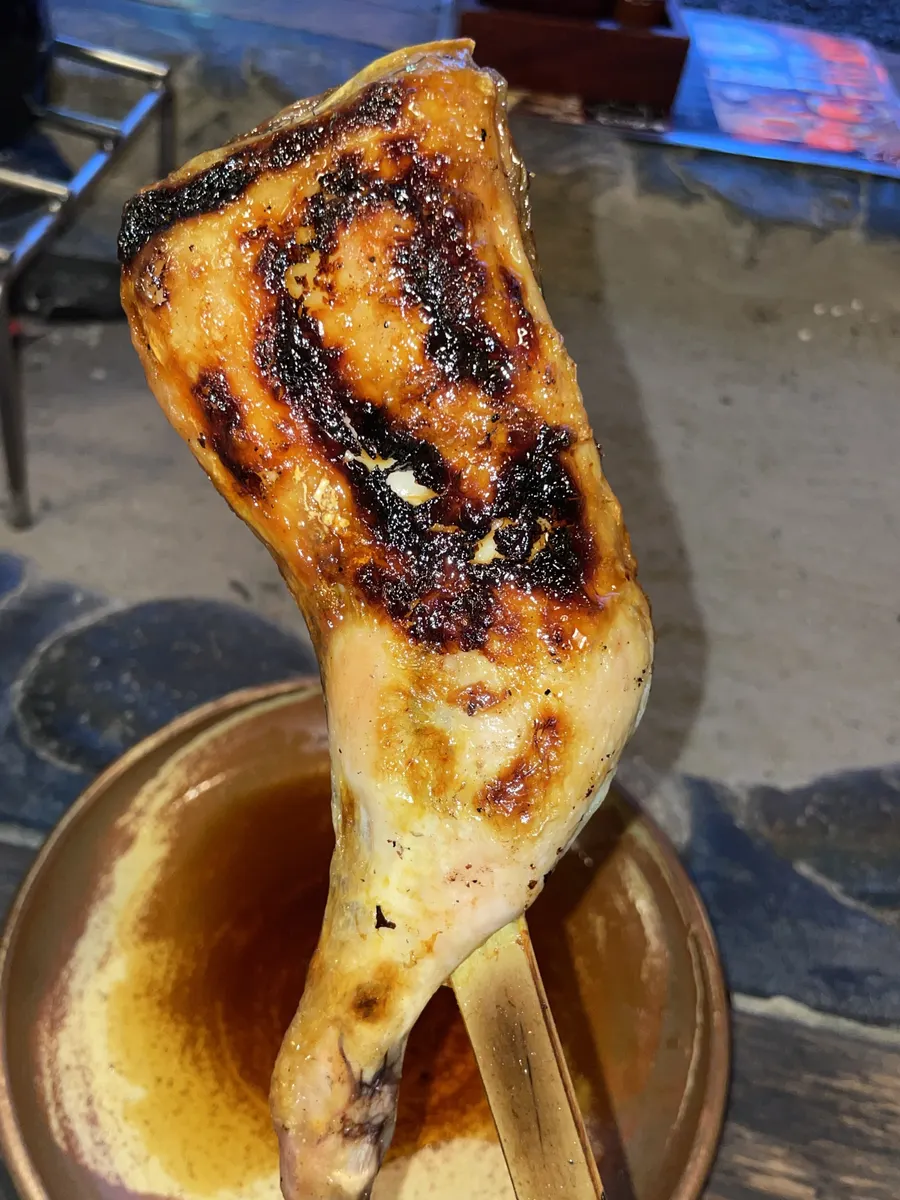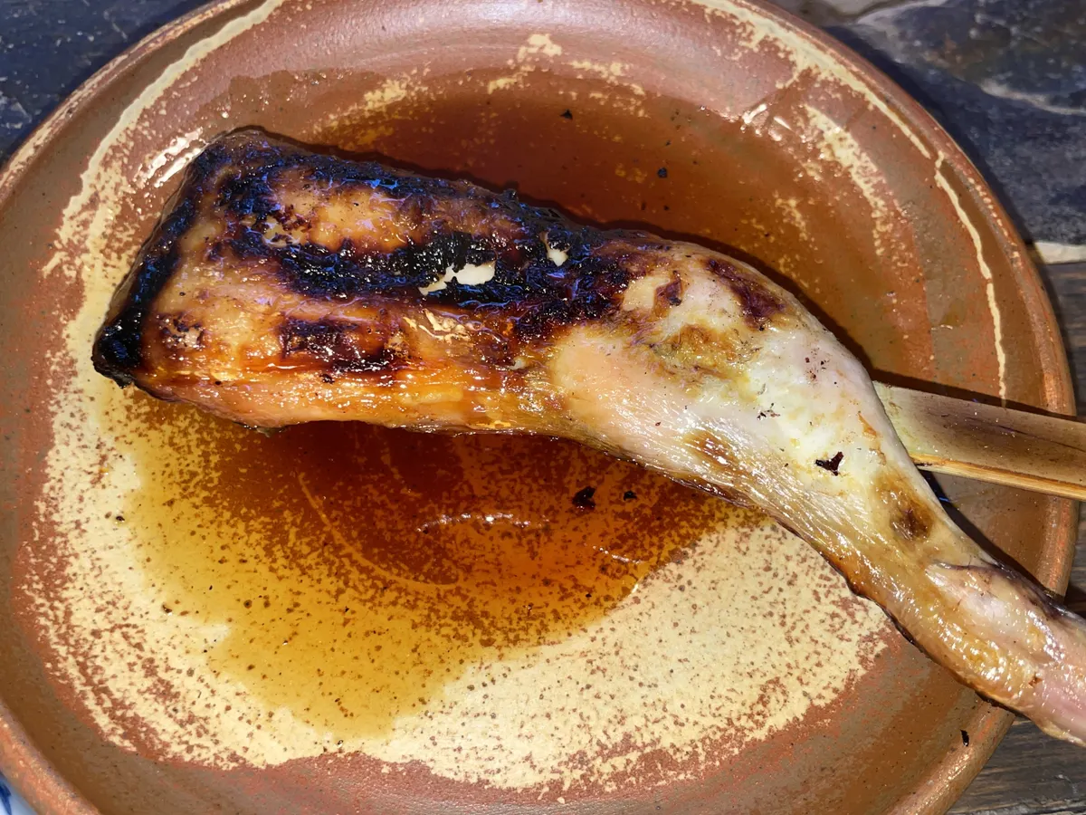 甘辛なたれに漬けて焼かれる鶏肉は