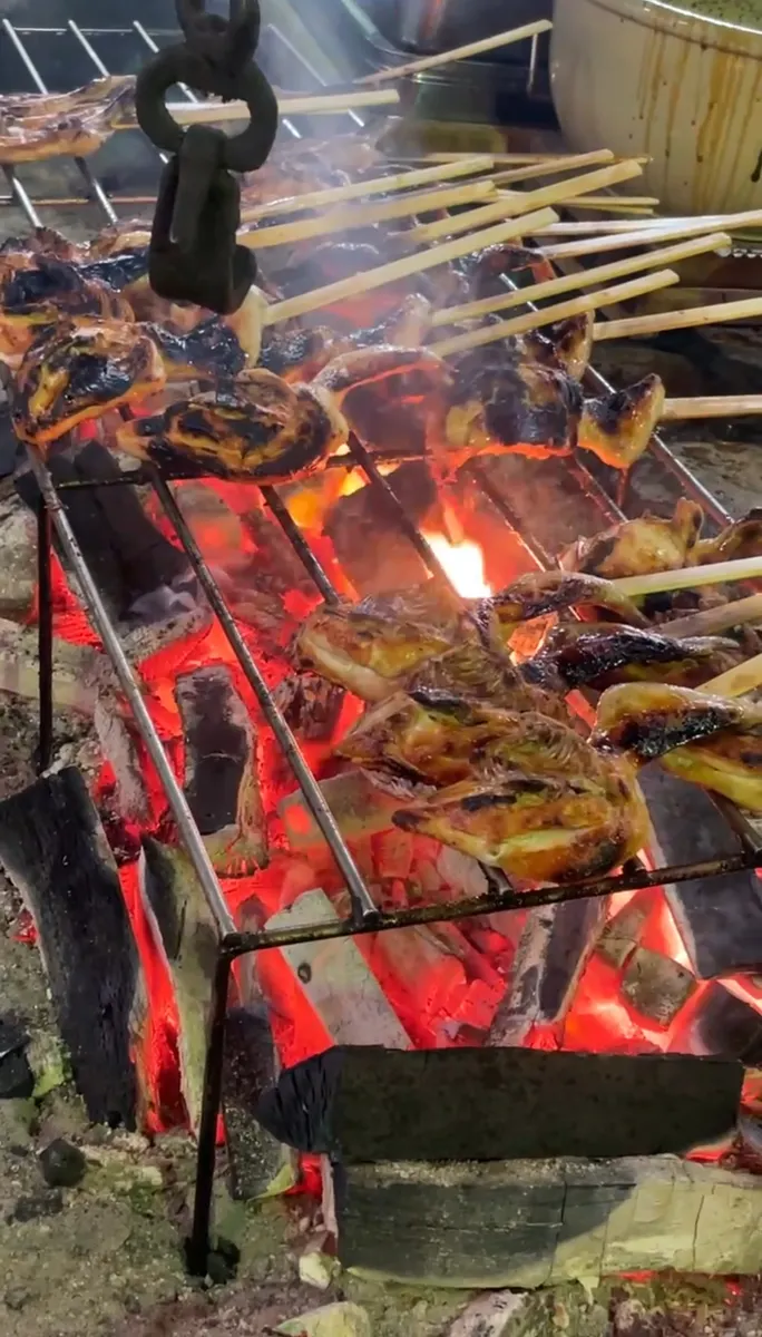 炭火焼きしていきながら焦げ目をつけて
