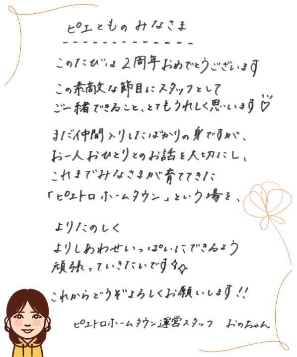 📌ピエトロホームタウン運営スタッフ おのちゃん セレクト
